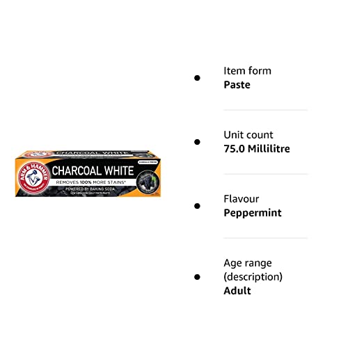 Arm and Hammer Charcoal White gently removes impurities from the tooth enamel surface that can cause daily stains, removing 100 Percent more surface stains. While the Active Calcium works to rebuild and restore the enamel surface giving you twice the enamel strength compared to your regular toothpaste.