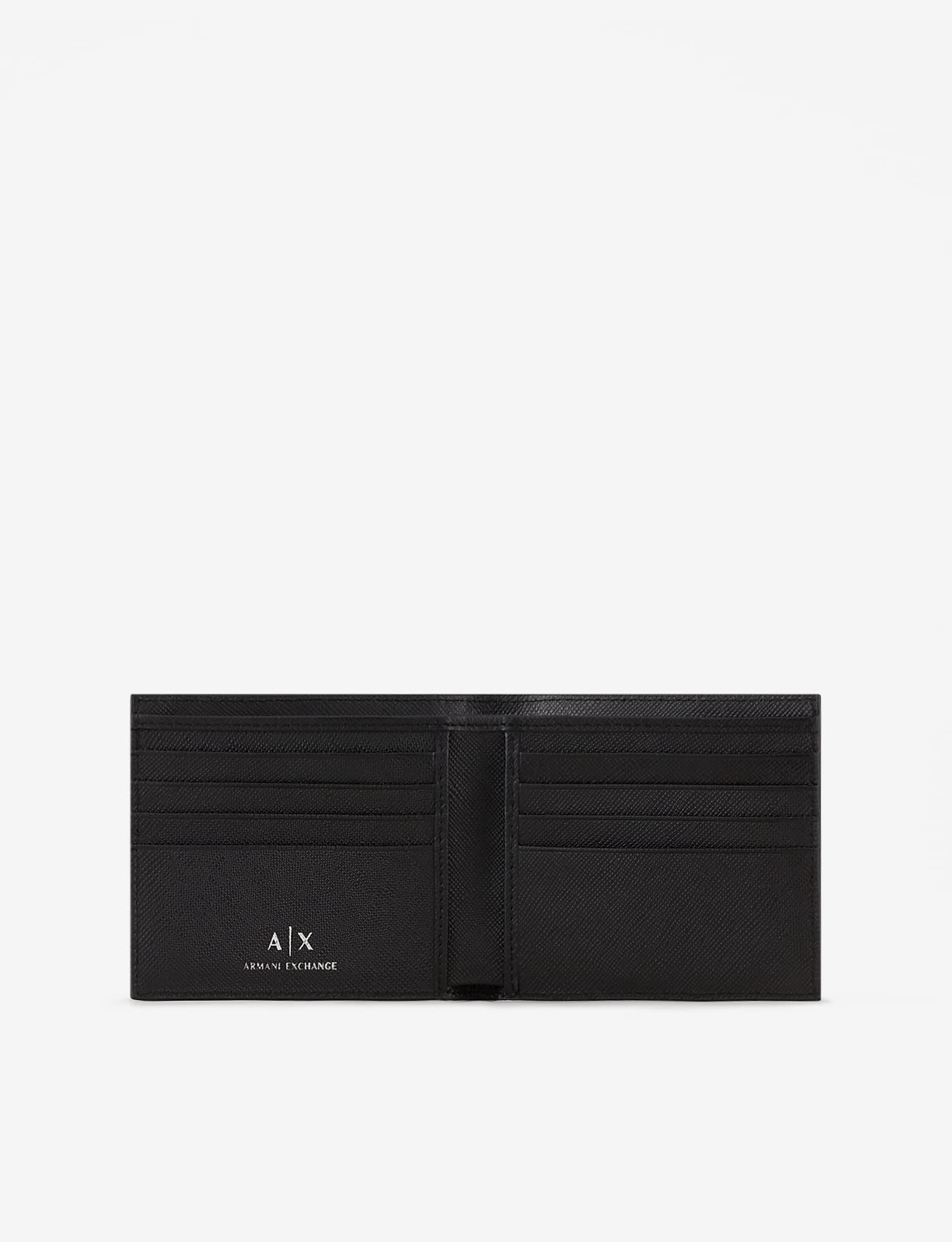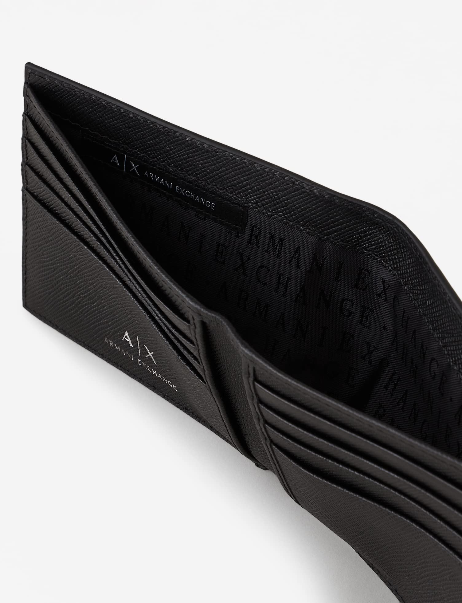 Details: Armani Exchange bifold wallet in genuine cowhide with 4 card slots on each side, cash opening. Armani Exchange Men's Plate Logo Saffiano Leather Bifold Wallet Fold
