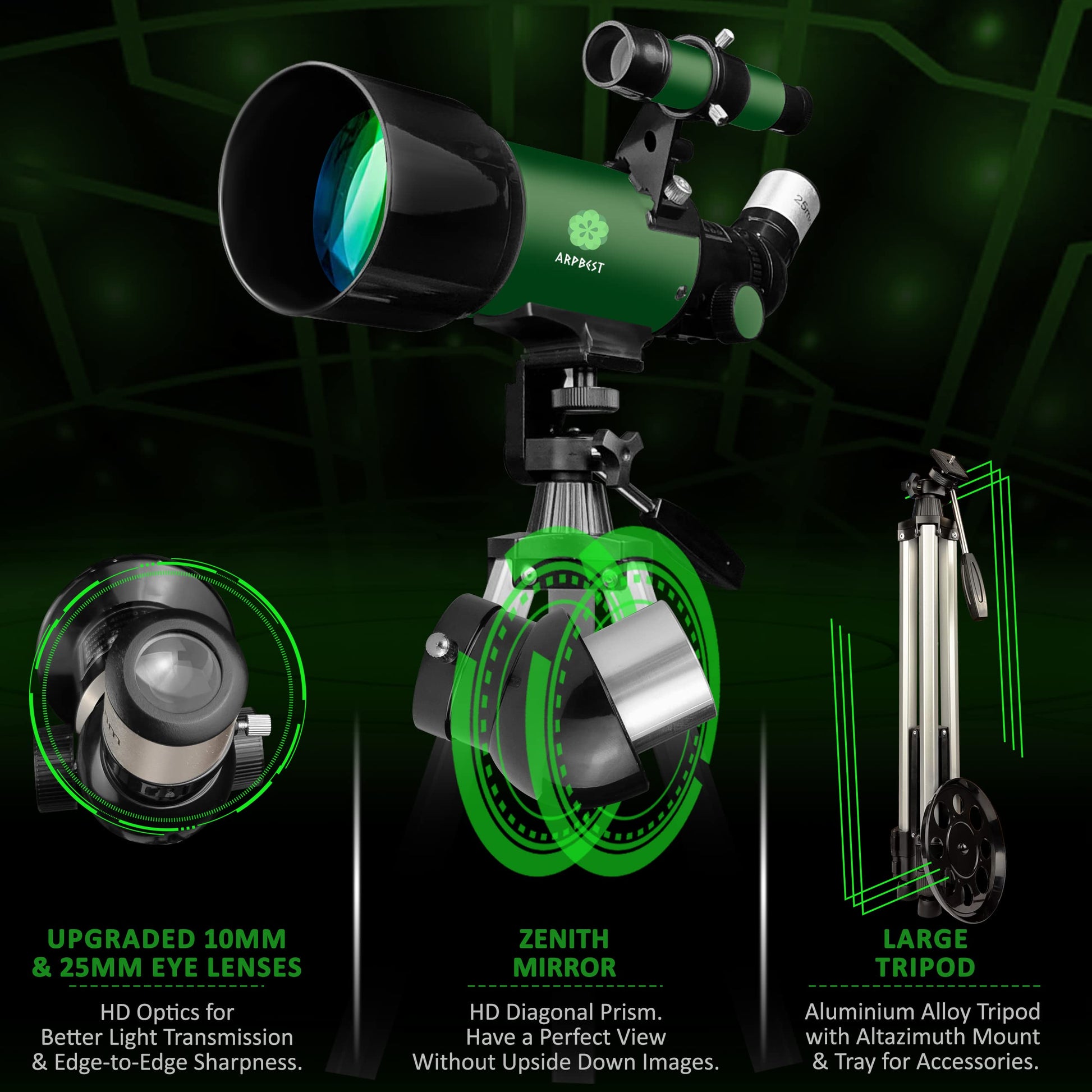 ARPBEST High Definition Telescope with Smartphone Holder & Tripod - 70mm Aperture & 400mm AZ Mount - High Power Astronomical Telescope for Kids - Beginners Telescope for Adults with Carrying Bag