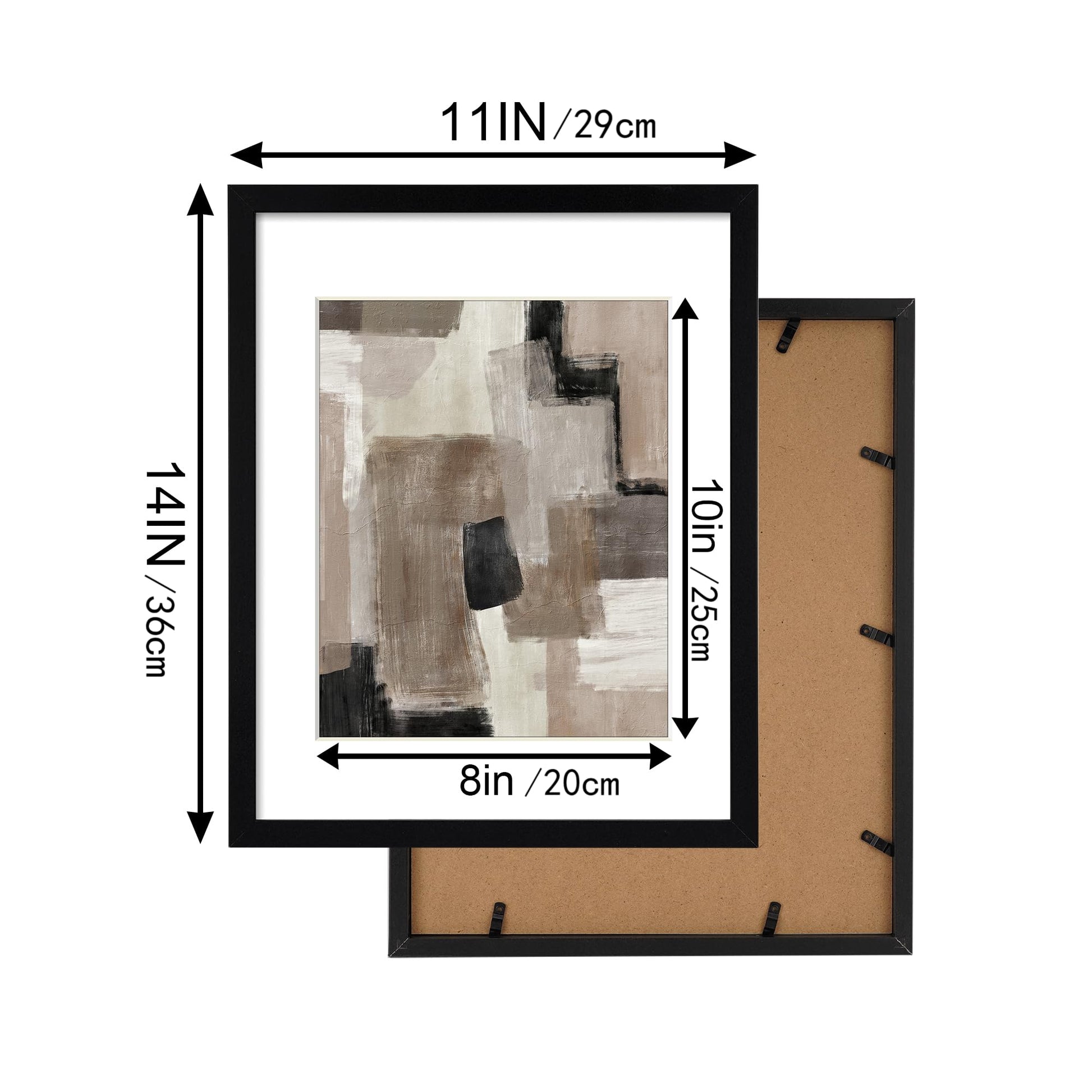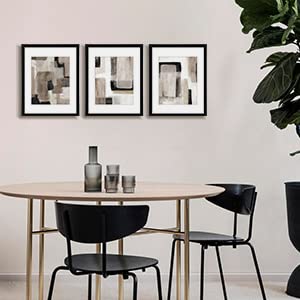 ArtbyHannah Framed Abstract Wall Art 3 Pack 11x14 IN with Brown Black Tan Blocks Prints for Wall Decor with Black Frames 29x36 cm, Extra Art Prints of Botanical Included
