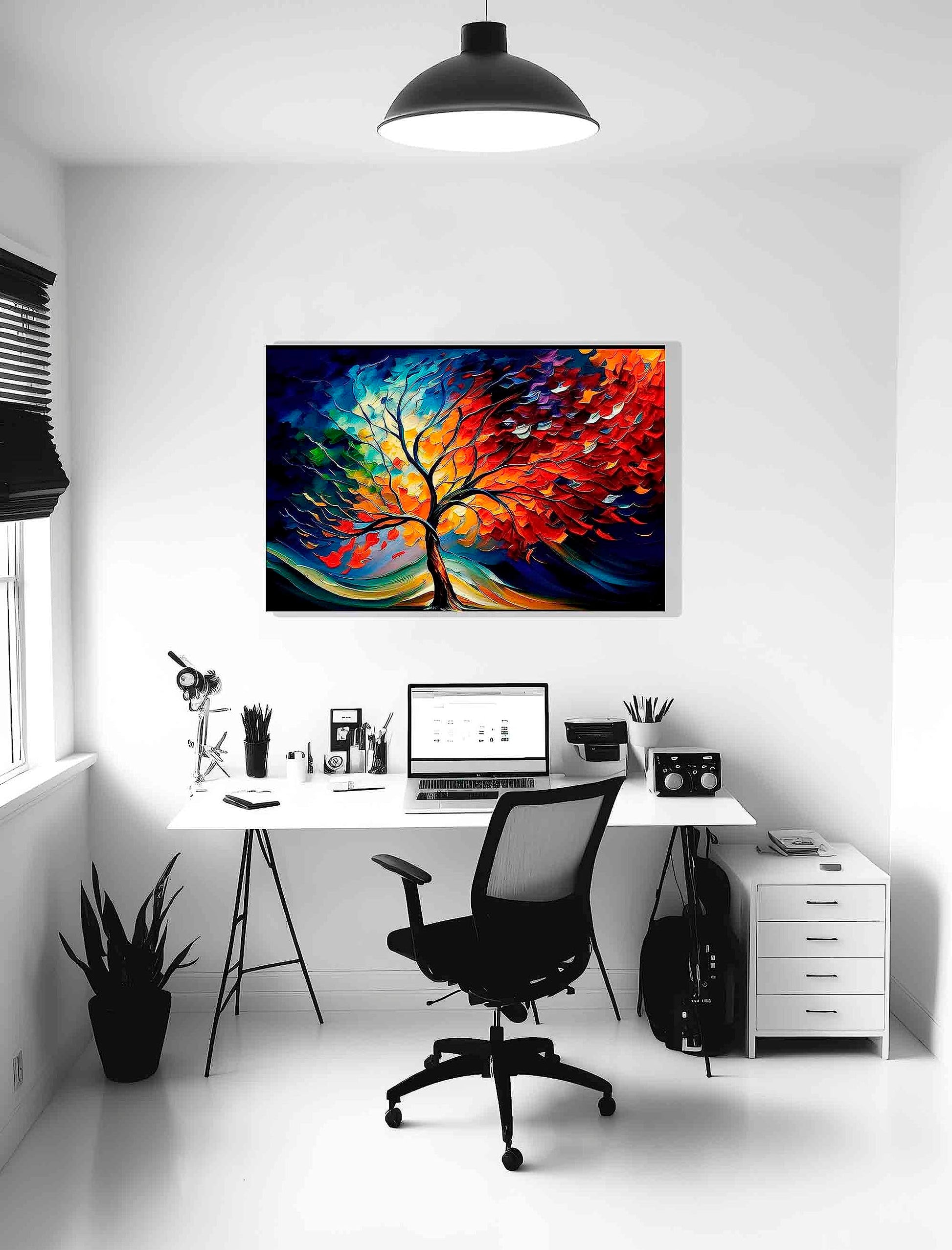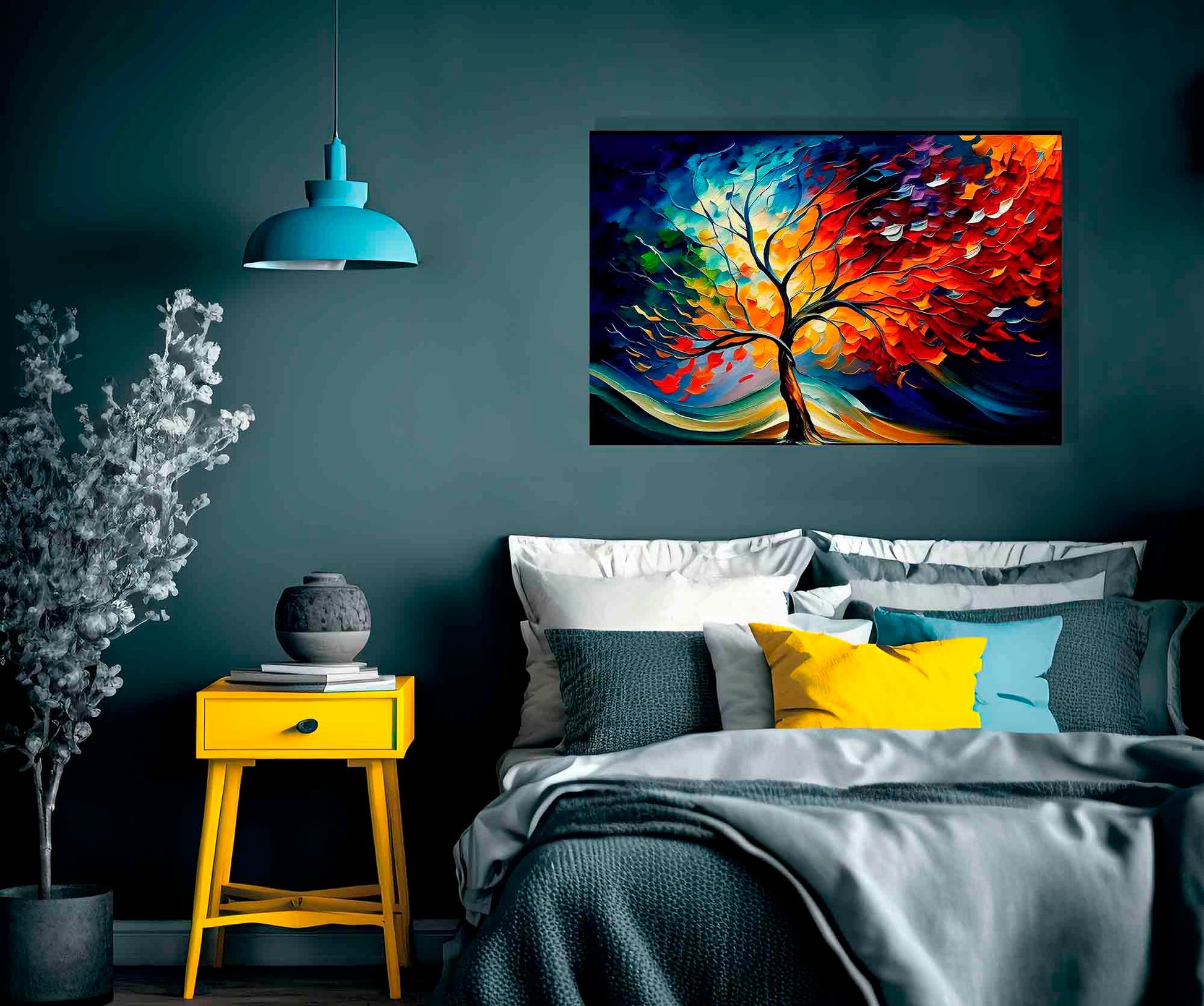 - Windy Tree Of Life, canvas wall art prints for wall, featuring fade-resistant ink which ensures long lasting vibrant colours, hand stretched around an 18mm thick pine wood frame.