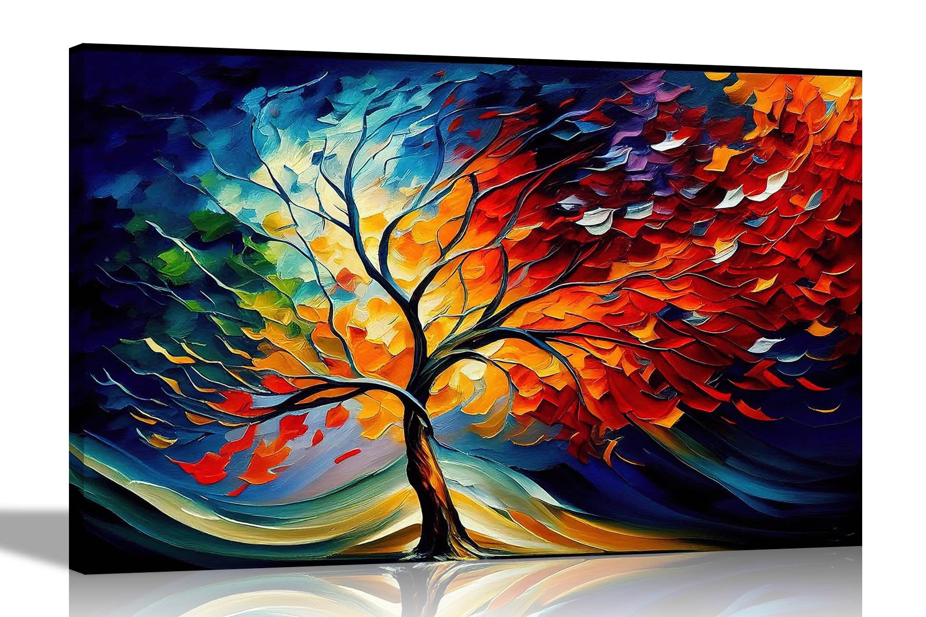 Artley Prints - Colourful Tree Of Life in the Wind Canvas Wall Art Prints | Abstract Pictures | Framed and Ready to Hang for Living Room Extra Large 101 x 76cm (40 x 30 inches)