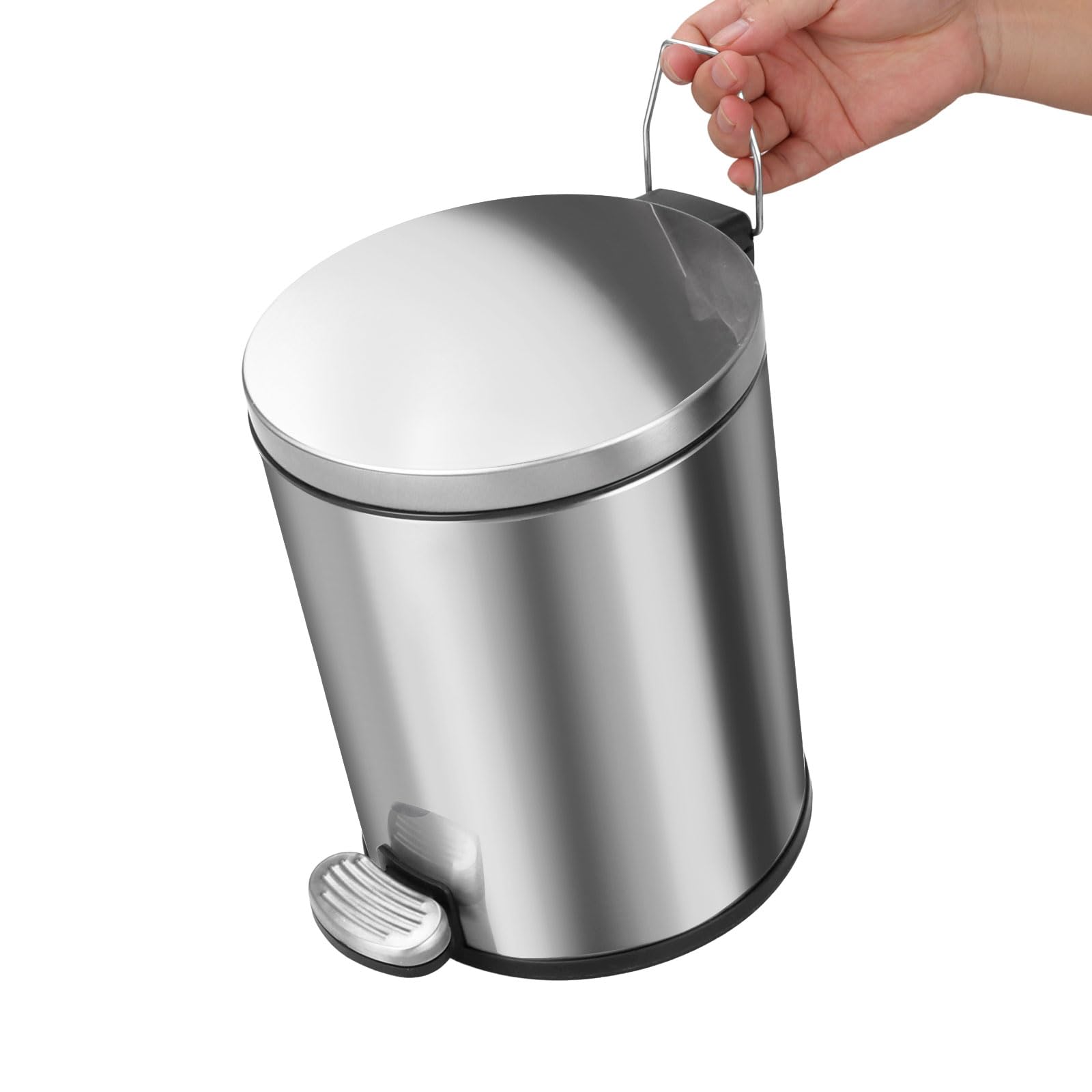 ASelected 6L Round Bathroom Pedal Bin Stainless Steel Pedal Bin for Bathroom Bedroom Office