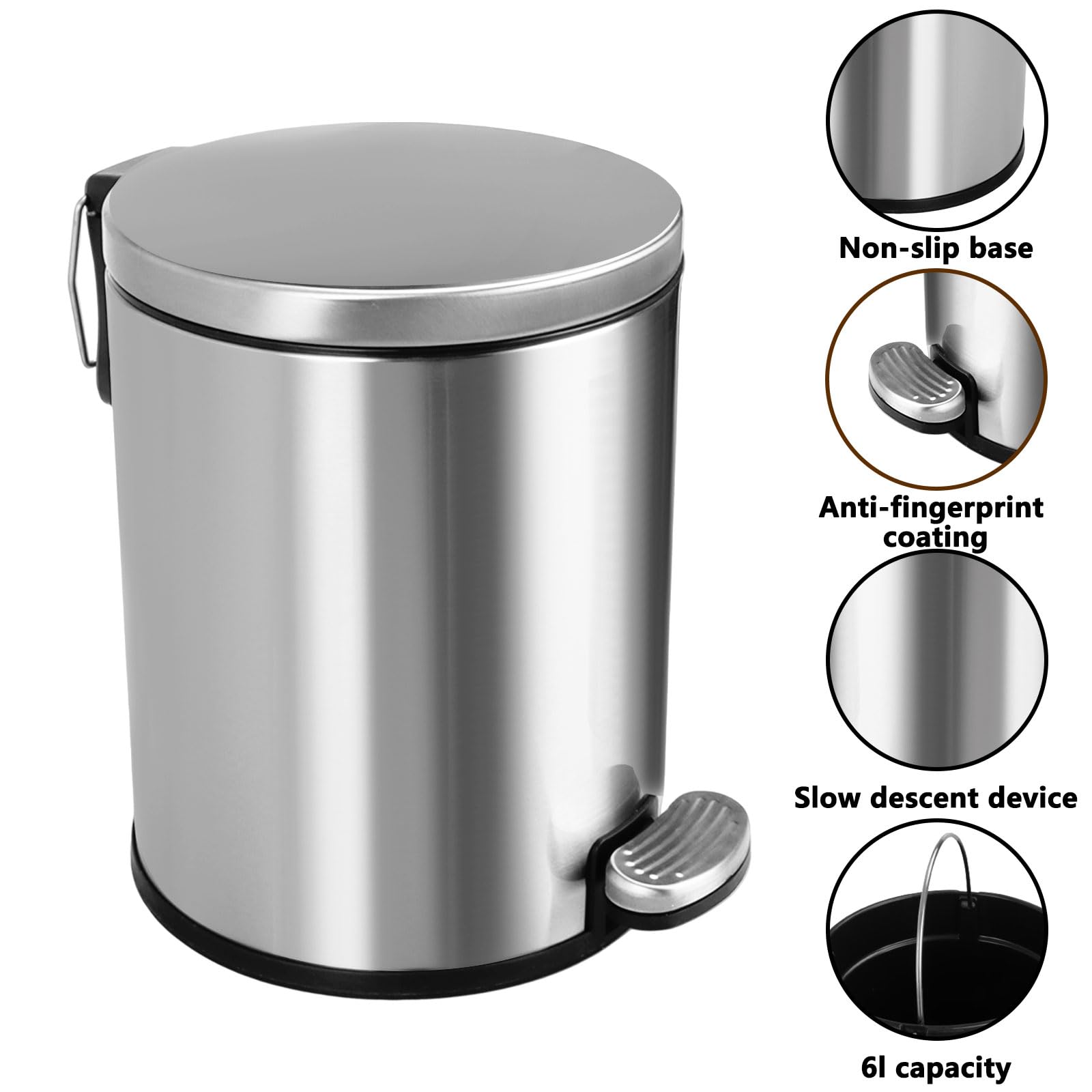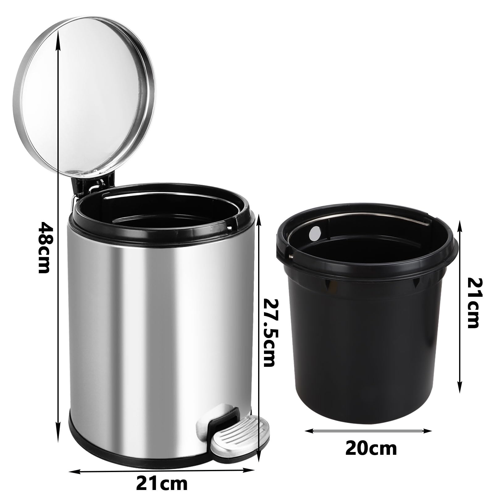 - SIZE:High quality stainless steel waste capacity 6 liters,27.5x21cm