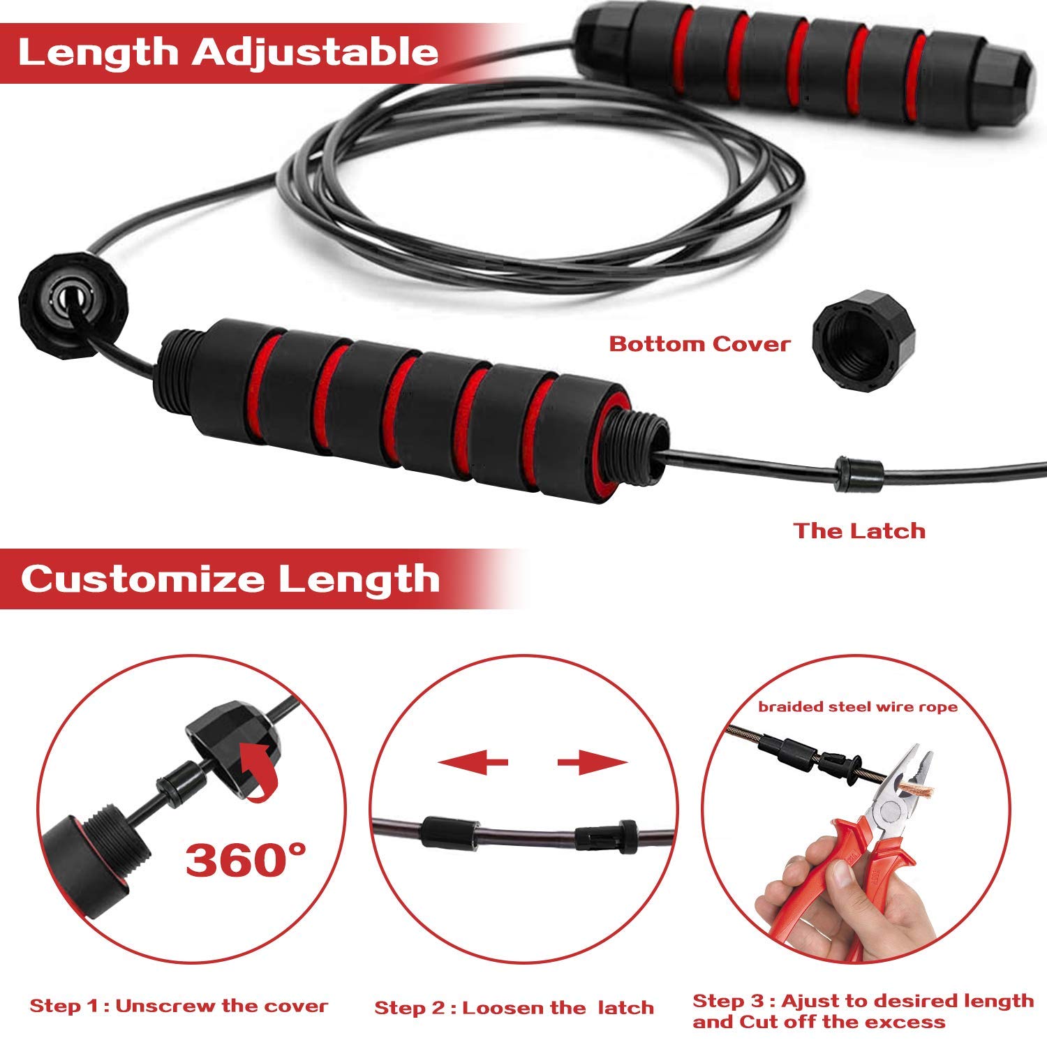- Durable PVC-Embedded Wire Rope: The braided steel wire rope coated with PVC guarantees maximum durability, ensuring it won’t crack or break, and providing a smooth skipping experience.