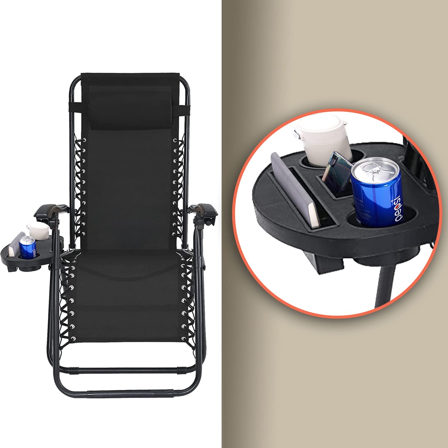 - Cup Holder and Locking mechanism – the zero gravity chair may be adjusted from 90 to 150 degrees and locked into place. Armrests with curves can offer cosy support. Depending on your needs, the removable headrest can be raised or lowered. A simple and useful cup holder is built into the chair for drinks, phones, tablets, and other small objects