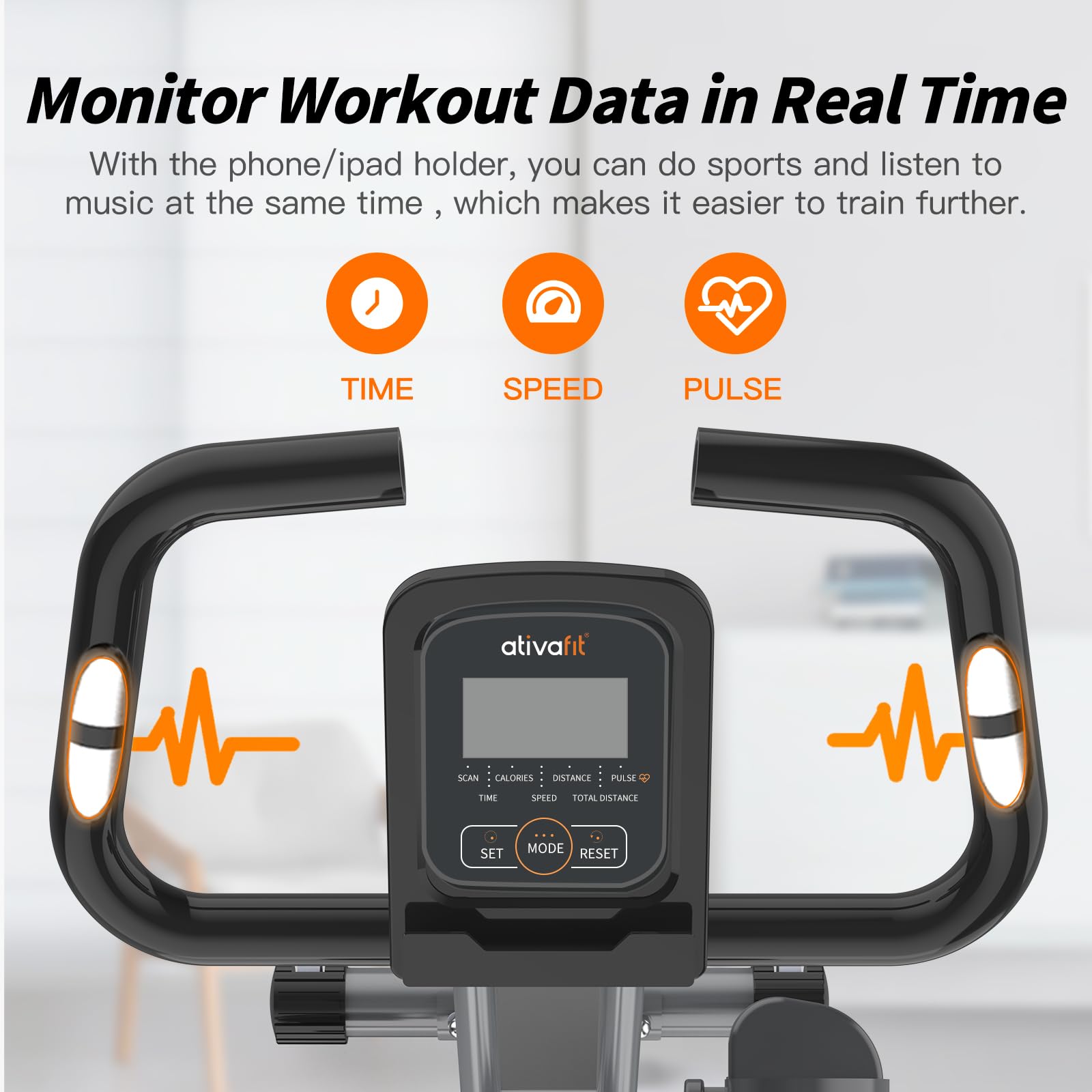 - X-TYPE AND TRANSPORT WHEELS - ATIVAFIT bike combine with the X-type physical balance theory in the design,is safe and stable,you don't worry you will fall down. Meanwhile, our bike is equipped with transport wheels, is very easy to get it to move, and easy to storage.