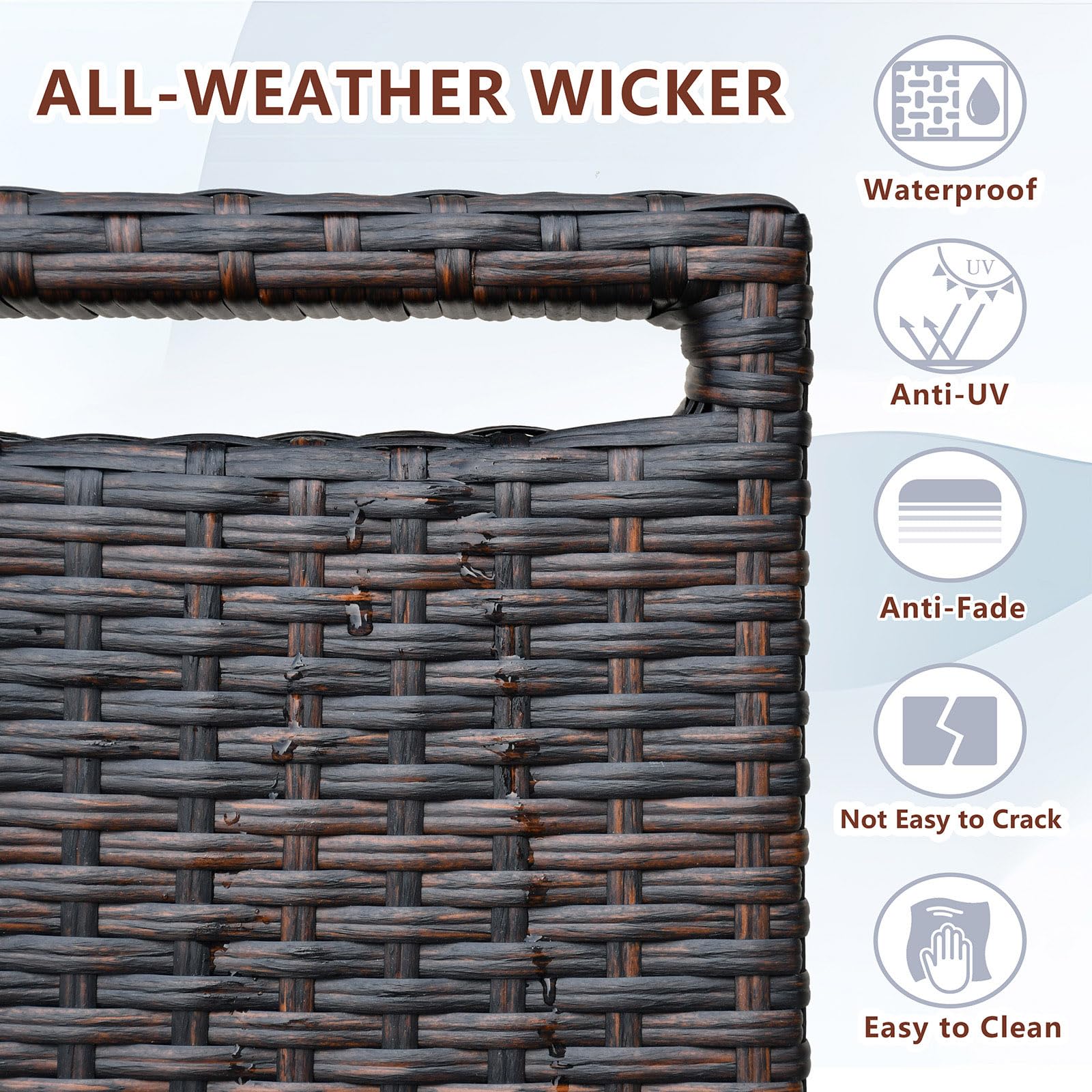 - Durable Construction: The high-density polyethylene (HDPE) resin rattan wicker is 3000 hours UV protected, preventing fading and cracking caused by sunlight, water, oil, and sweat. The aluminum frame is rust-resistant and built to long lasting use