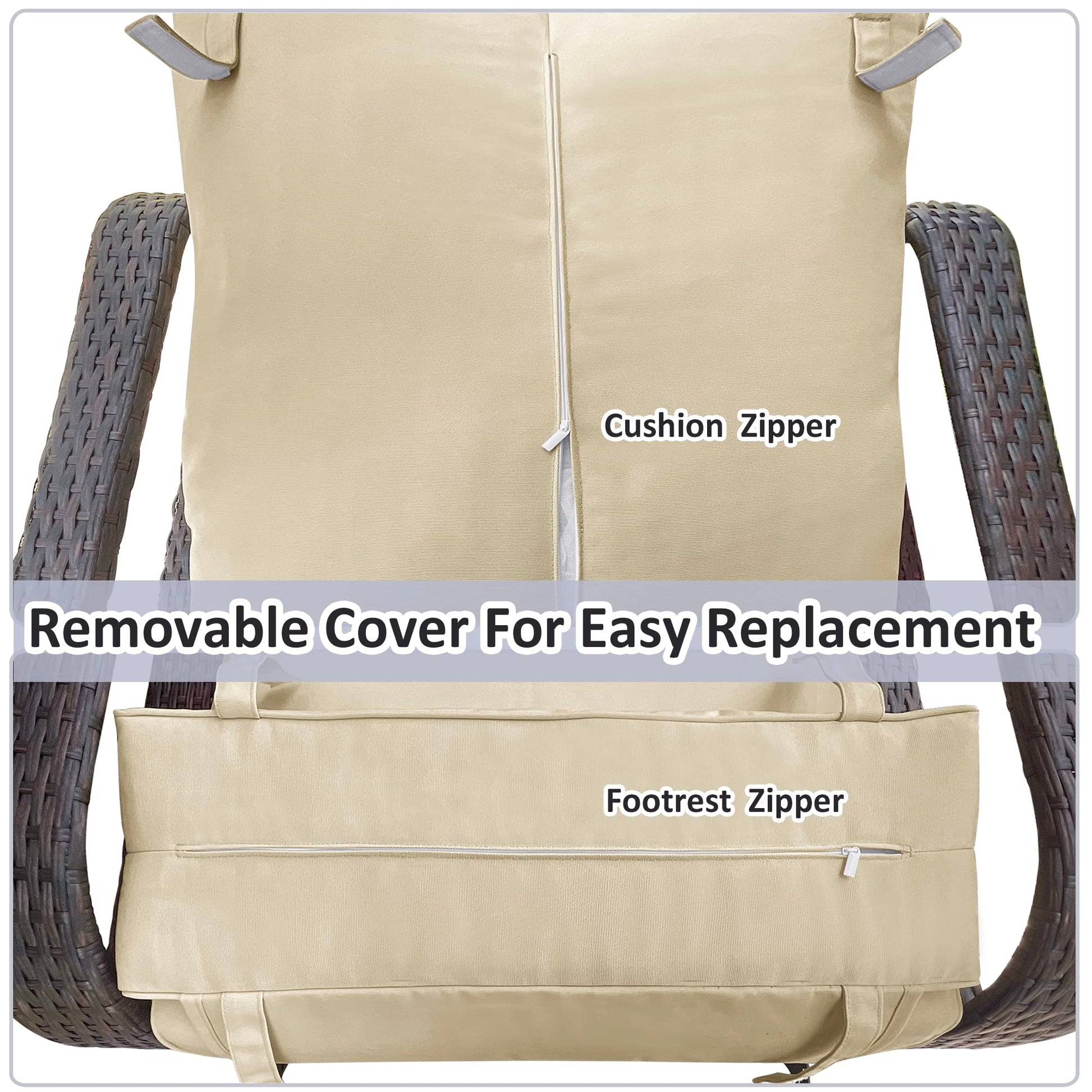 - Extra-thick Comfy Cushion: 5.12'' thickness cloth material cushion providing a super comfortable feeling when you lying down the lounge chair. Just comfort your body and release your hands on it. Ergonomic design will relaxing your neck and supporting waist in a perfect postion to achieve maximum comfort