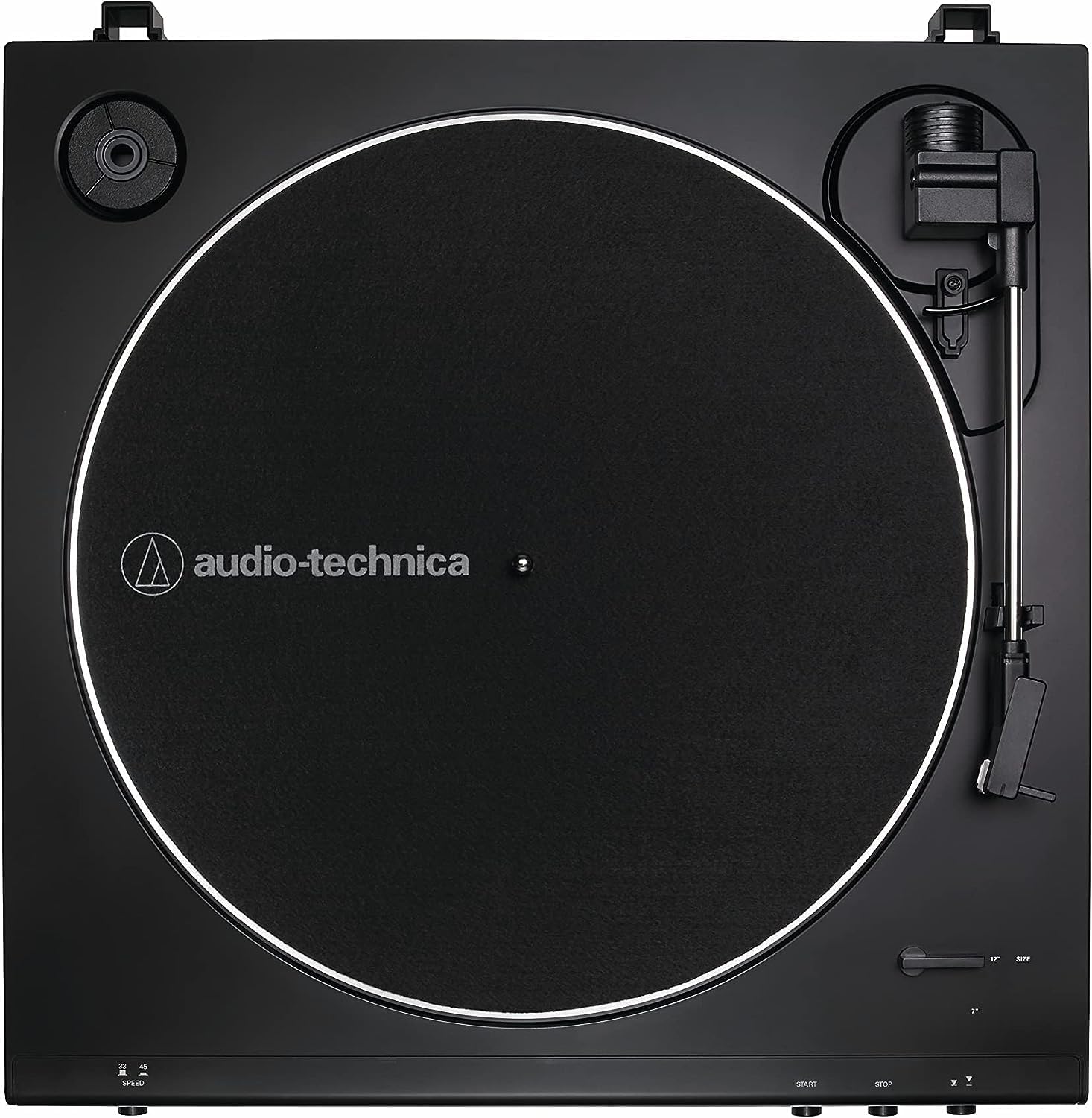 - Fully automatic belt-drive turntable operation with two speeds: 33-1/3, 45 RPM