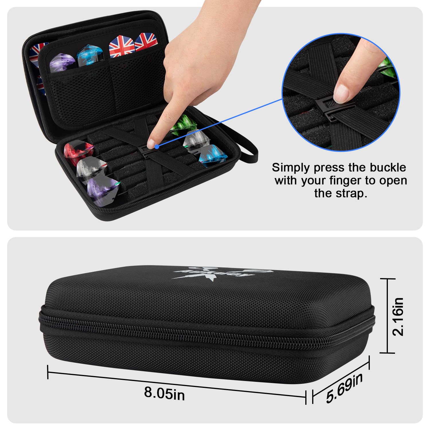 - 【Extra Large Capacity】The Dart Case can easily store up to 12 darts, and there are also 3 large-capacity accessory pockets for dart sticks, dart O-rings, dart tips and other dart accessories, which can easily carry your dart set wherever you want to go.