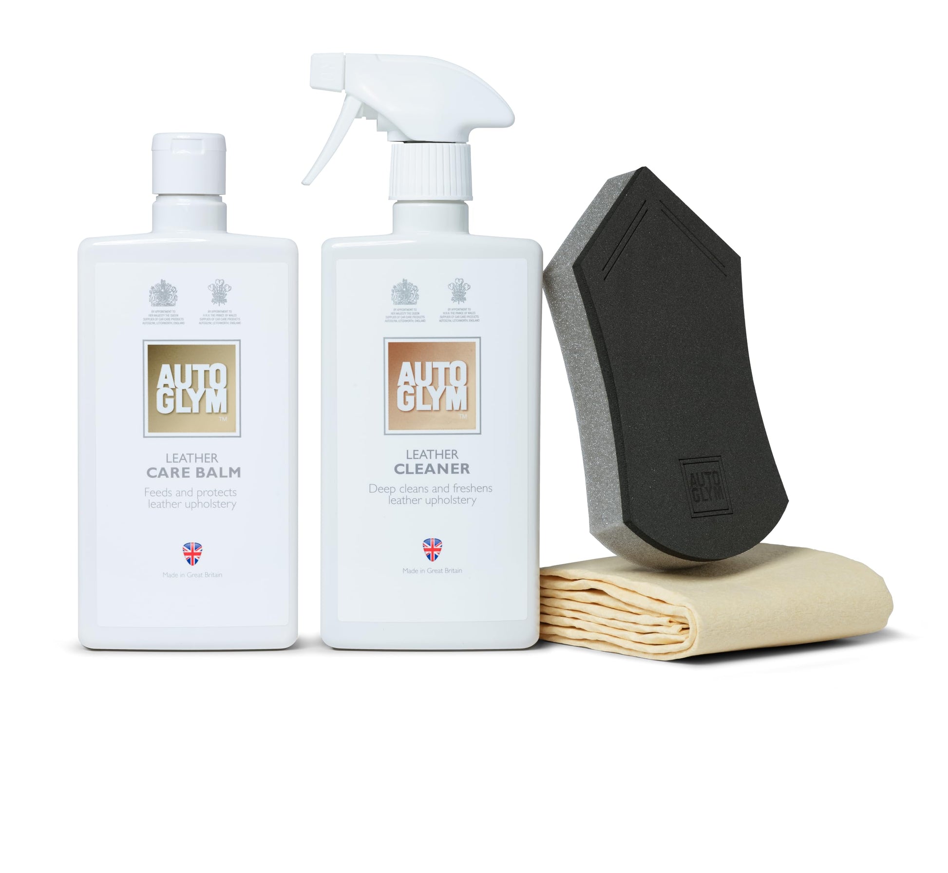Automotive leather is a hard wearing, yet comfortable material. To ensure it remains healthy and supple it must be cared for regularly. The Autoglym leather range has been developed with leading automotive brands to clean and protect without discolouring or affecting the natural matte finish. This comprehensive 2 stage kit contains everything that you need: 500ml Leather Cleaner 500ml Leather Care Balm 1 x Hi-Tech Aqua-Dry 1 x Perfect Polish Applicator Wash the supplied accessories as required in clean, warm water and allow to air dry. Note: For use on automotive leather only, unsuitable for household leather and clothing.