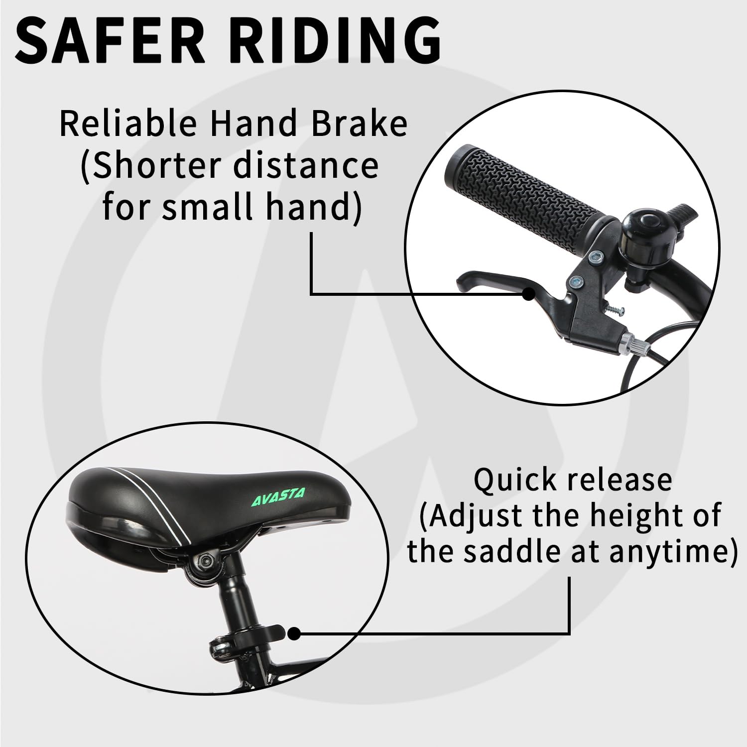 - 【BRAKE SYSTEM】AVASTA bicycles use front and rear dual aluminum V-brakes to provide effective and sensitive braking force. Greatly improves the safety of your child during cycling.