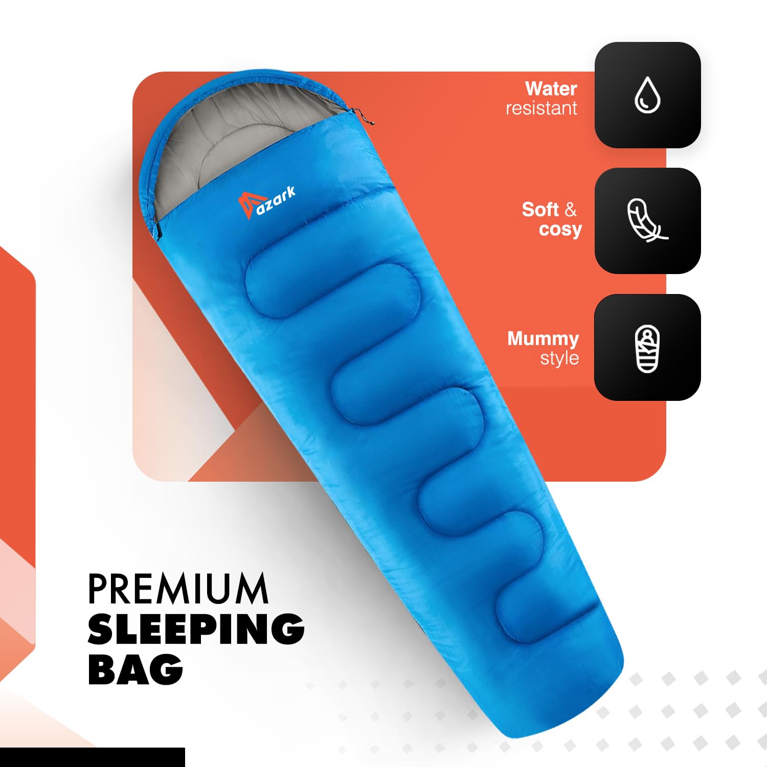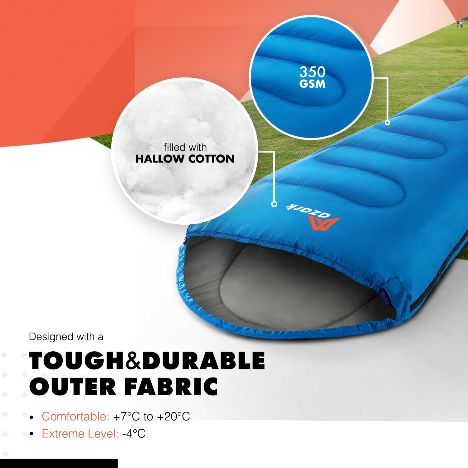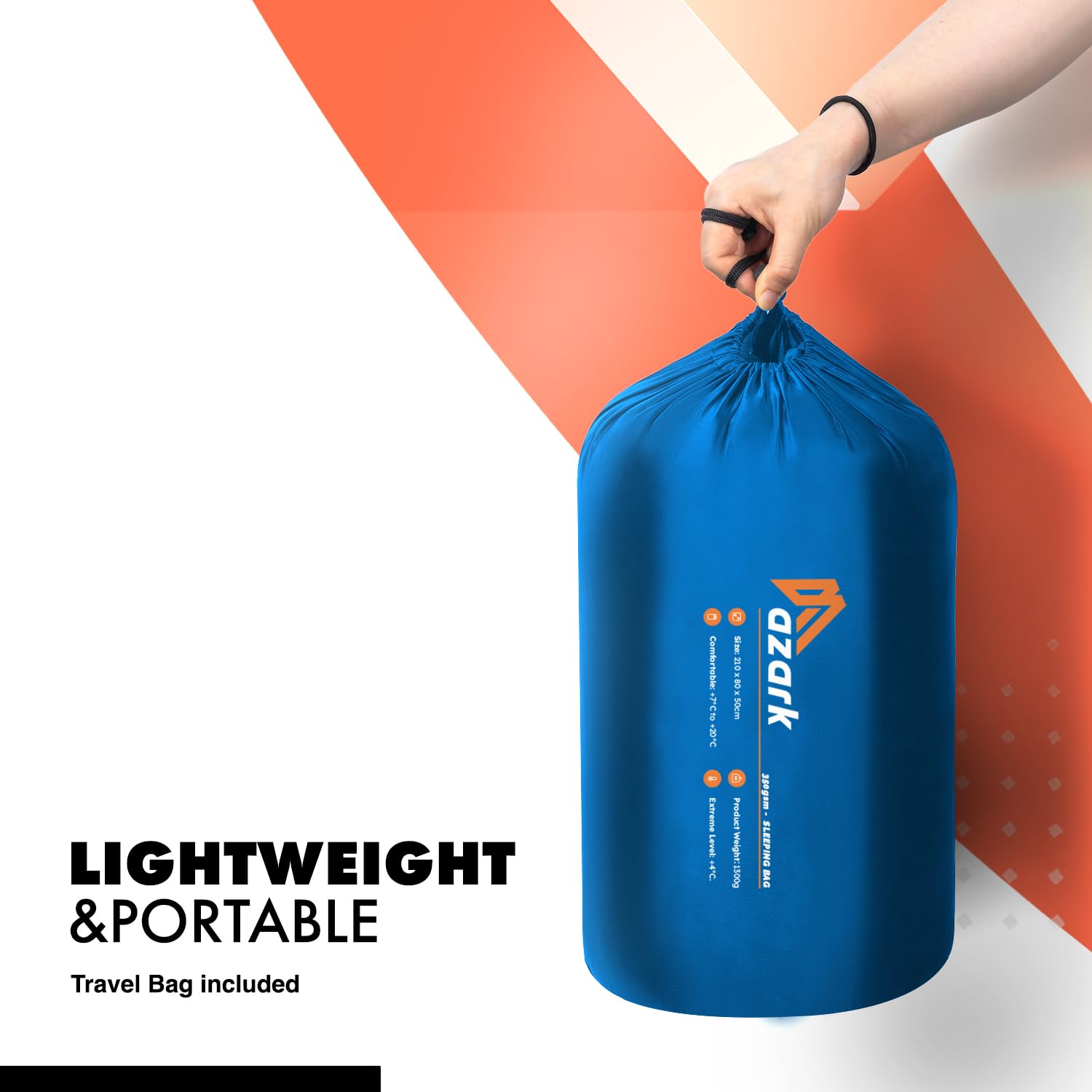 azark Premium Single Sleeping Bag, 350GSM, Lightweight and Waterproof, 4 Seasons of Camping, Hiking and Outdoors, Sleeping bag for Adults & Kids (Black)