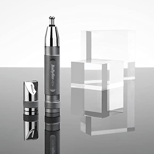 BaByliss Super-X Metal Series Nose Trimmer, Ear Eyebrow Hair Trimmer for Men, Grooming Kit, Gifts for Men (Silver/Grey)