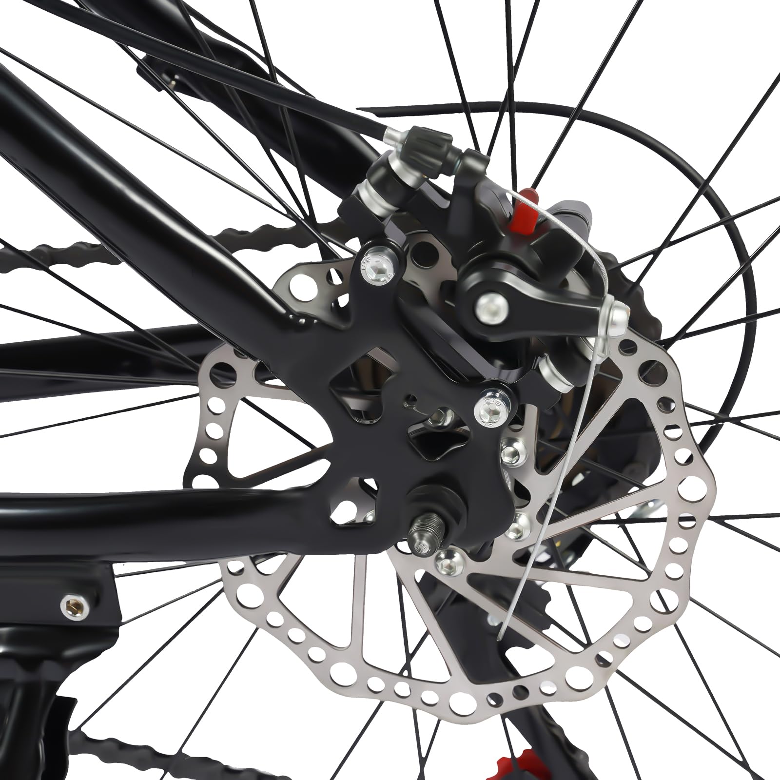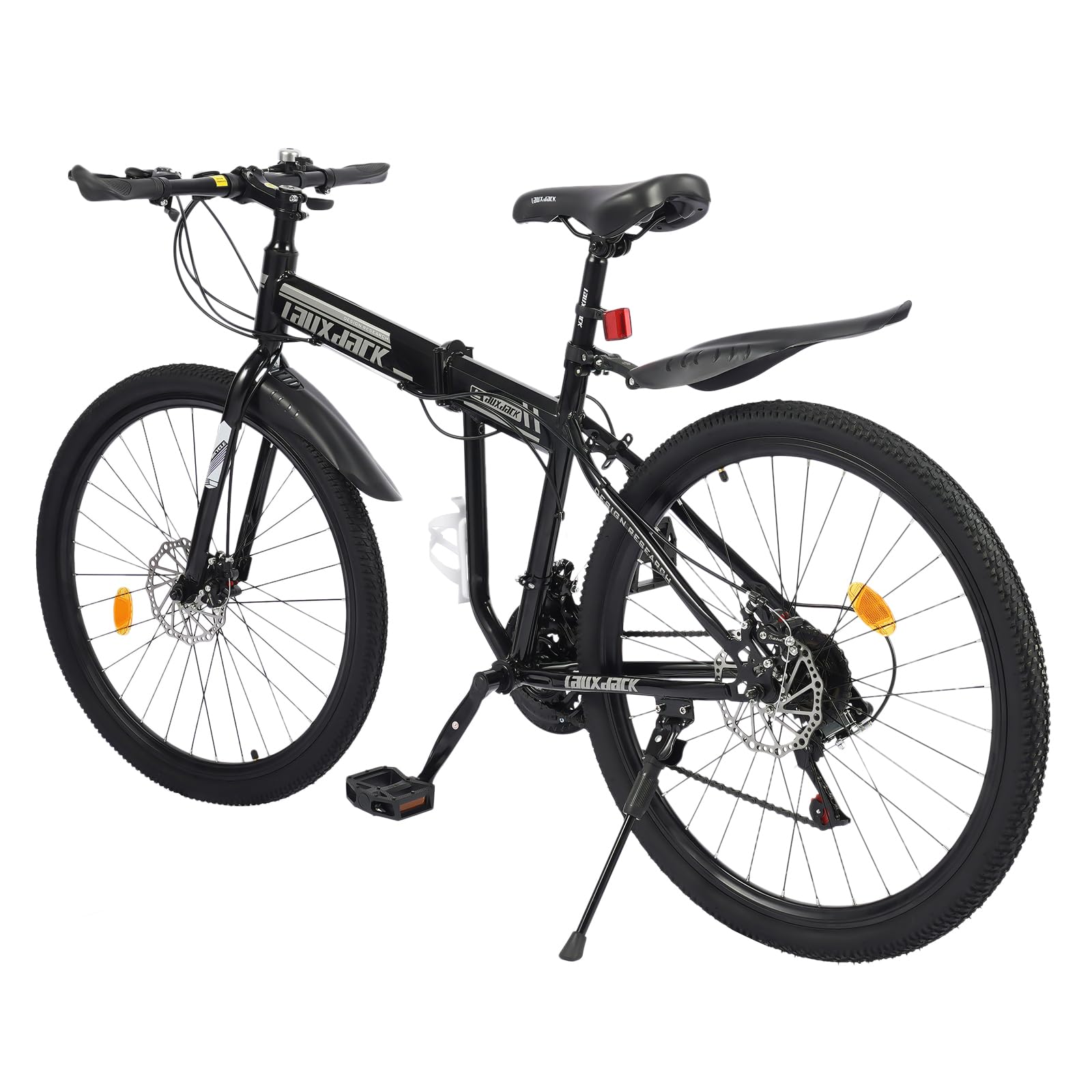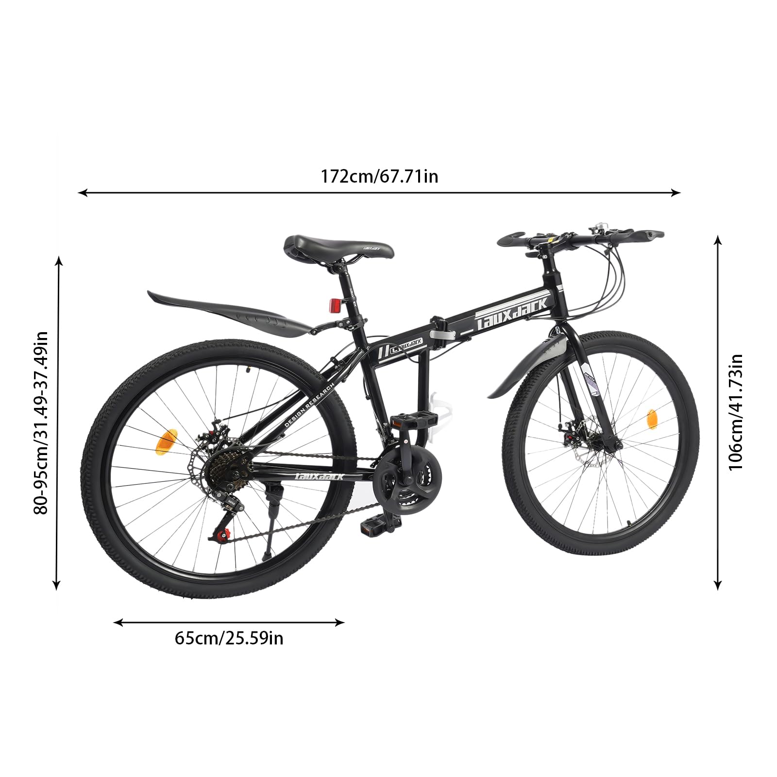 - š“ćPRECISION SHIFTING&SAFEćThe 26 inch folding mountain bike has precision shifting front and rear chainstays to give you different options on different terrains. The precision 21-speed foldable bike gives you a smooth shifting experience. The bicycle features dual front and rear disc brakes to provide you with efficient and responsive braking for a safe and reliable riding experience.