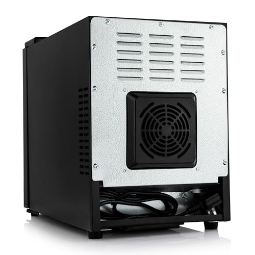 - QUALITY BUILD CONSTRUCTION - High Density Foam Injection Cabinet Mould with High Grade Dual Glazed Frameless Black Safety Glass Door. Dimensions = [W] 265 x [D] 515 x [H] 393 mm. Net Capacity = 17L | 6 Bottle Capacity
