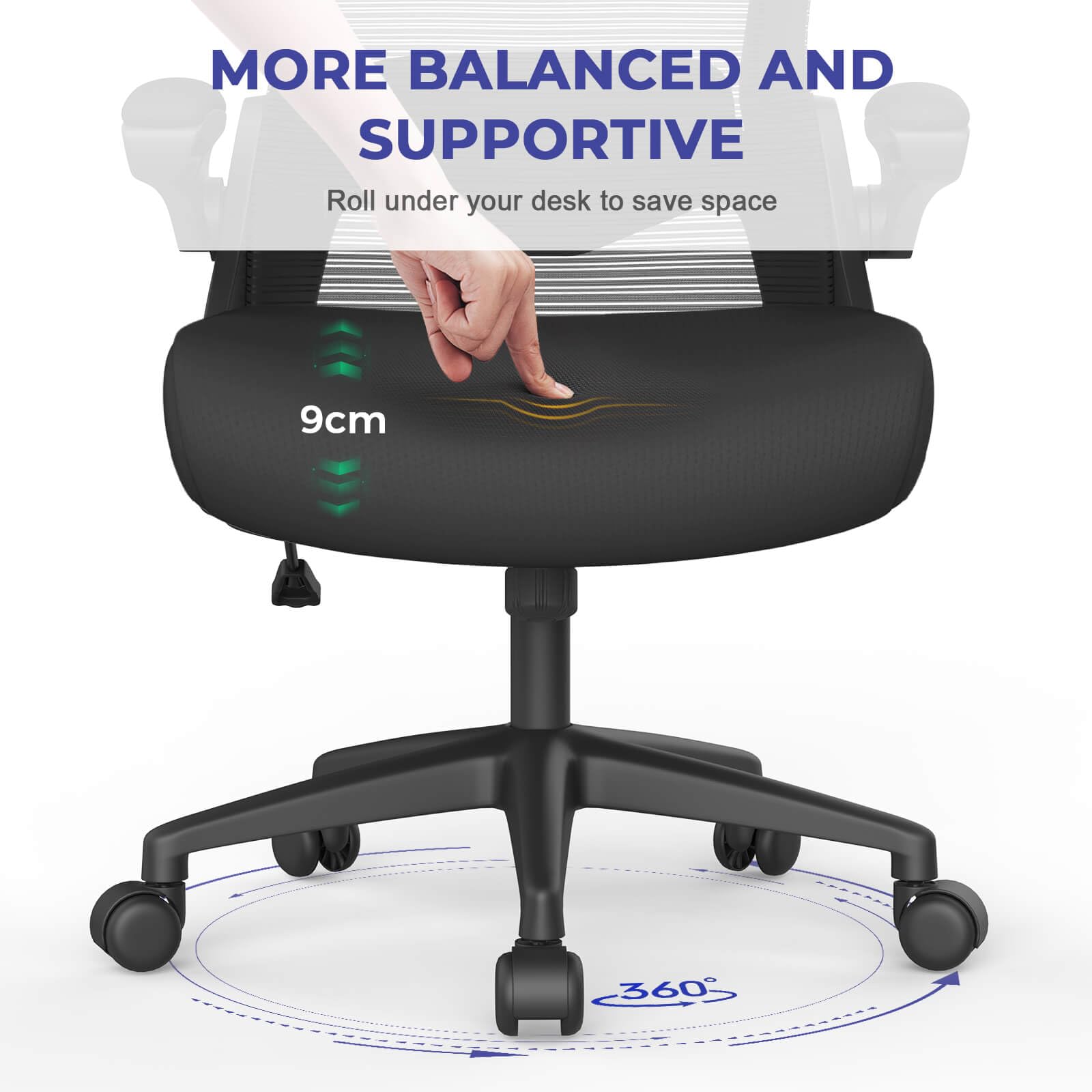 - Breathable Mesh & Comfy Cushion : The sponge inside the seat cushion is 9 CM thick,and covered with breathable mesh fabric to ensure comfortable seating.keeping you cool and comfortable throughout the day