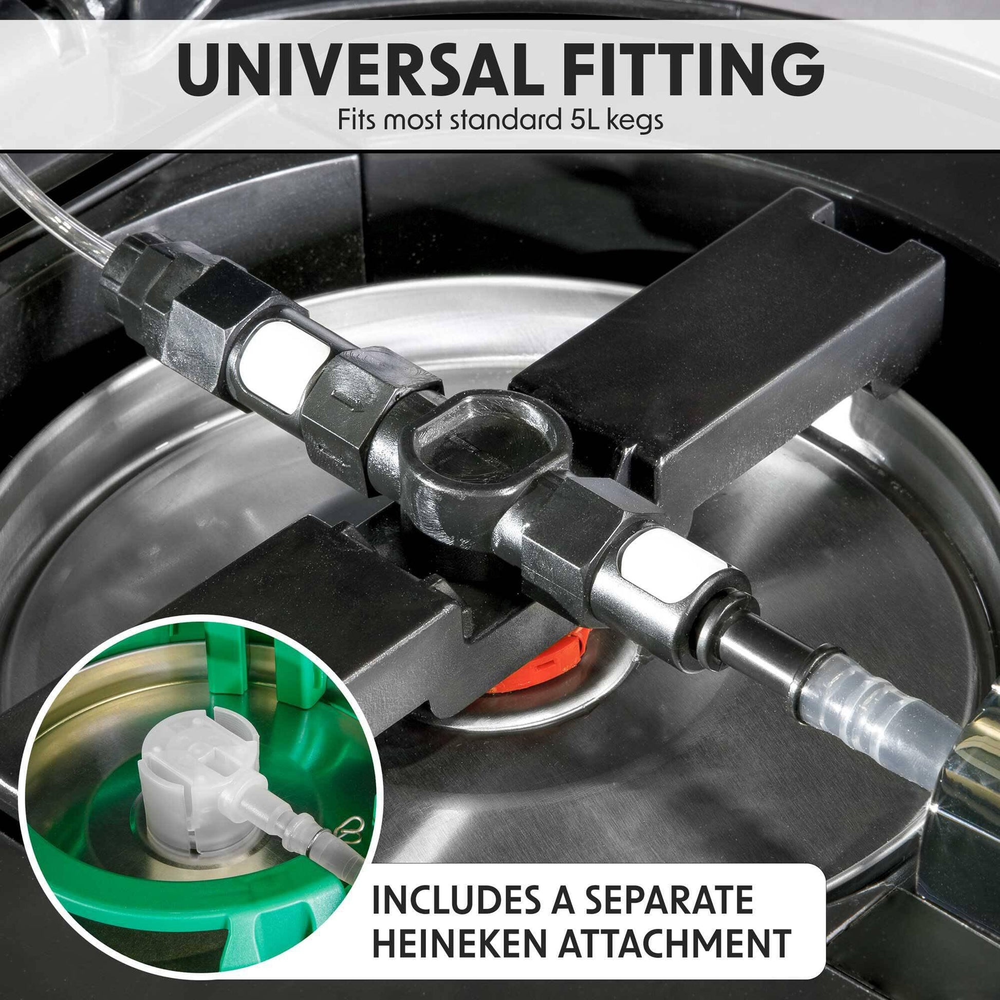 - Universal Fitting - Beer dispenser tap for most 5L mini beer kegs keeping costs low and operating using standard 16g CO2 canisters (supplied with 3 x 16g CO2 canisters).