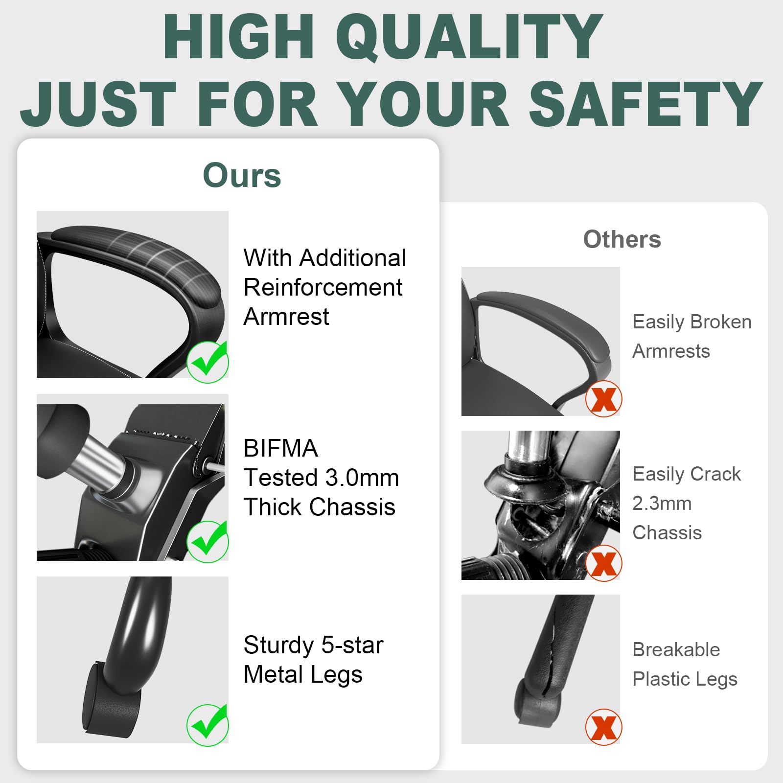 - 【Sturdy Components】Equipped with 360° PU silent casters, this chair effortlessly glides on any type of floor, including hardwood, carpet, and tile. Enjoy smooth and quiet mobility without worrying about scratches or marks on your floors. Our ergonomic chair boasts a sturdy metal base and an SGS-certified class 3 gas-lift. It has passed the BIFMA test.