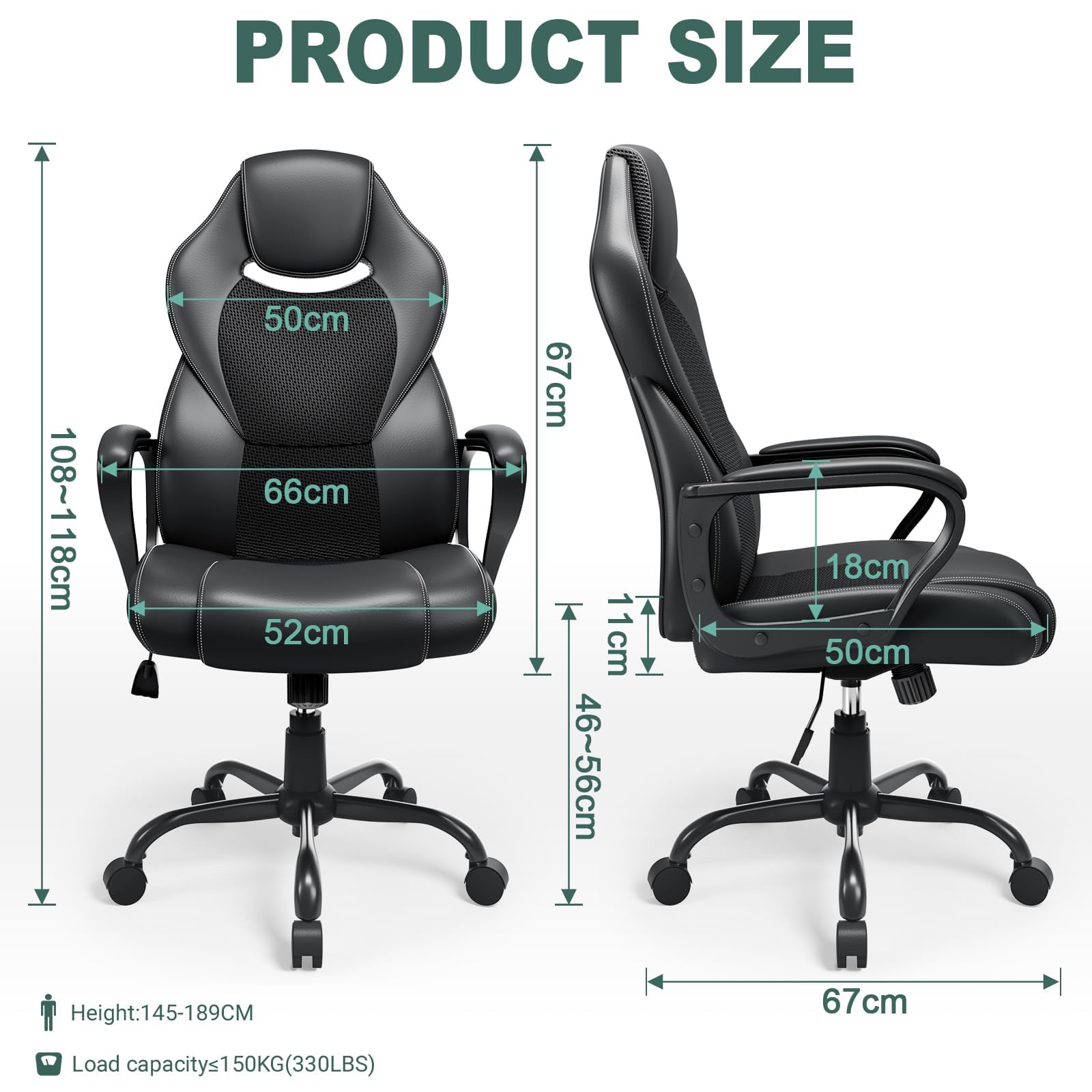 BASETBL Office Chair Executive Chair, High Back Racing Style Ergonomic Swivel Chair for Home Gaming Business, Lumbar Support PU Leather Adjustable Height Durable Comfy Chair Easy to Assemble (Black)