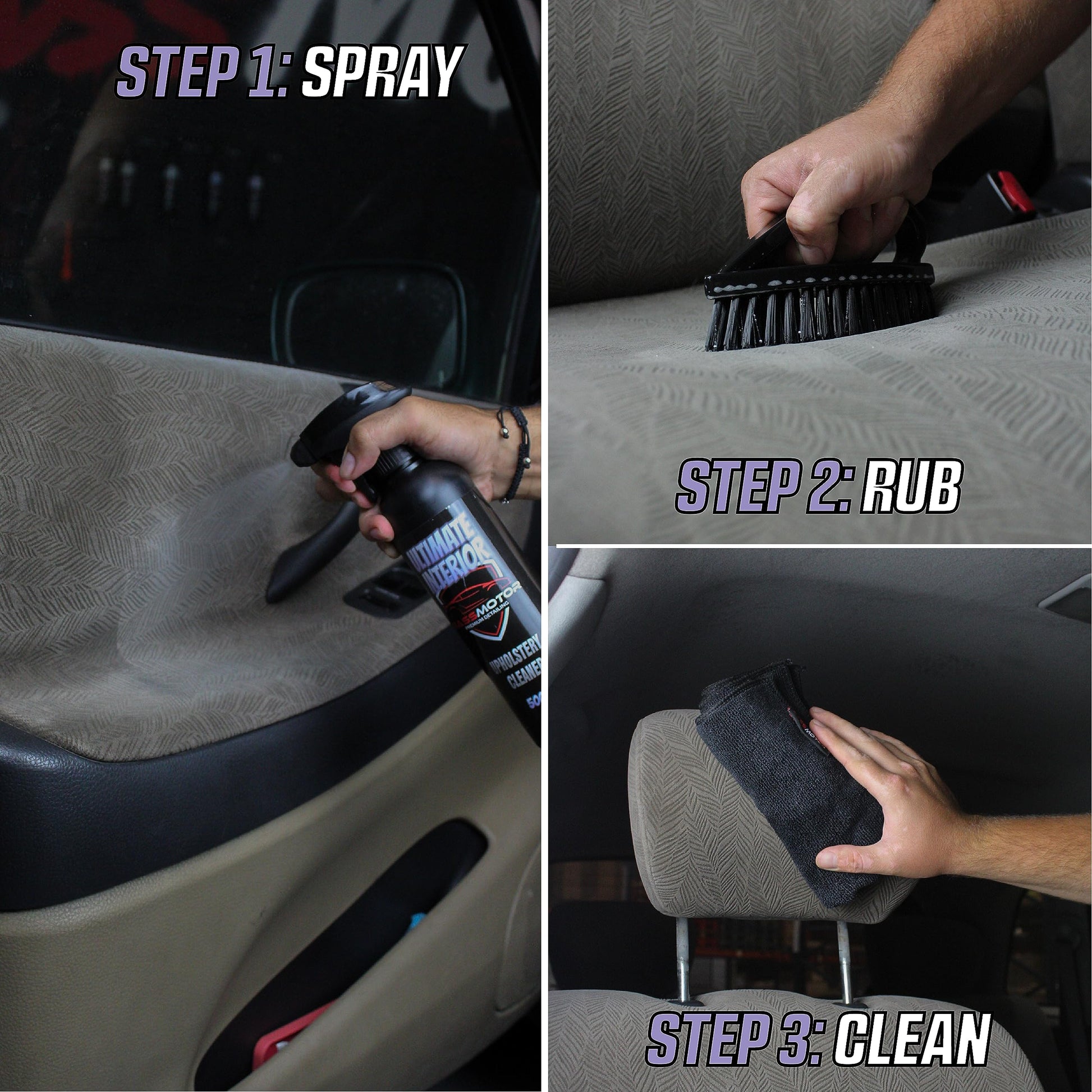 - PREMIUM INTERIOR STAIN REMOVER: Get your motorbike or car seat looking pristine with Ultimate Interior! This 2pcs car cleaning kit includes a spray foam for thorough cleansing and a convenient buffing brush for application and polishing.