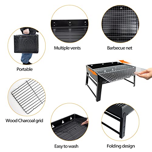 - ►EASY TO USE: The grill doesn't need to be installed. When you're barbecuing outside, you just need to put down the folding legs to start barbecuing. There are also bracelets on both sides of the grill for easy carrying. It is designed with ventilation holes at both ends of the grill so that air flow can be easily controlled and heat is evenly distributed on the grill. Barbecue grill grids can be removed clean, very convenient, its square is 10.63''x13.78''.