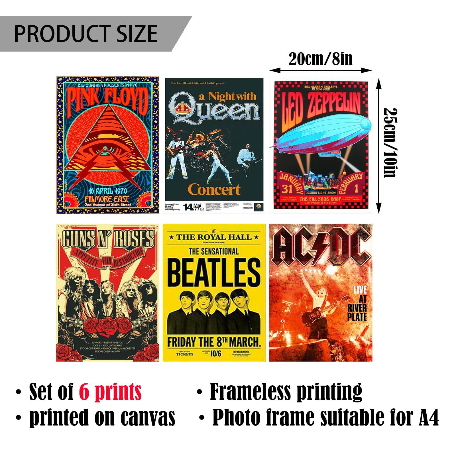 - 【HD CANVAS POSTER】A set of 6 album music poster canvases set of 70s 80s 90s rock band prints for wall aesthetics. We are sure it will be a great decoration for your room. Light up your empty rooms with these aesthetic rock band wall collage kit!