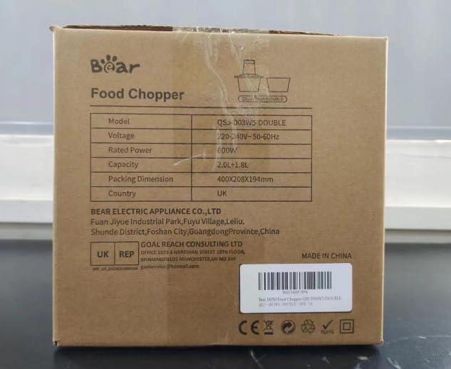 Bear 2L+1.8L 600W Electric Food Processors & Chopper with Glass Container and 304 Stainless Steel Container, 2 Speed Settings, 4 Stainless Steel Blades for Chopping Meat, Baby Food, Fruit, Vegetables