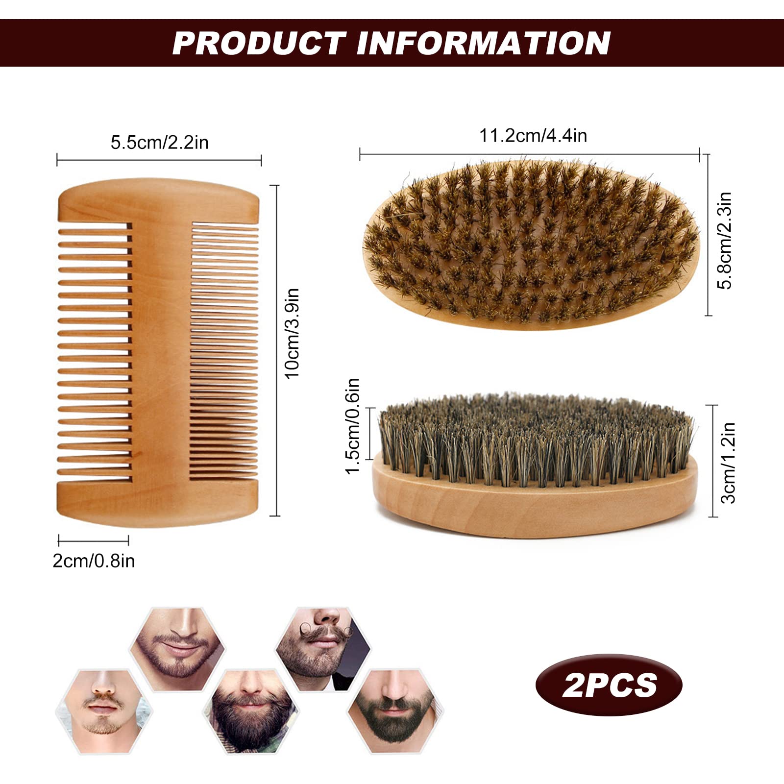 Beard brush size: 11.2*5.8*3cm /4.41*2.28*1.18inches