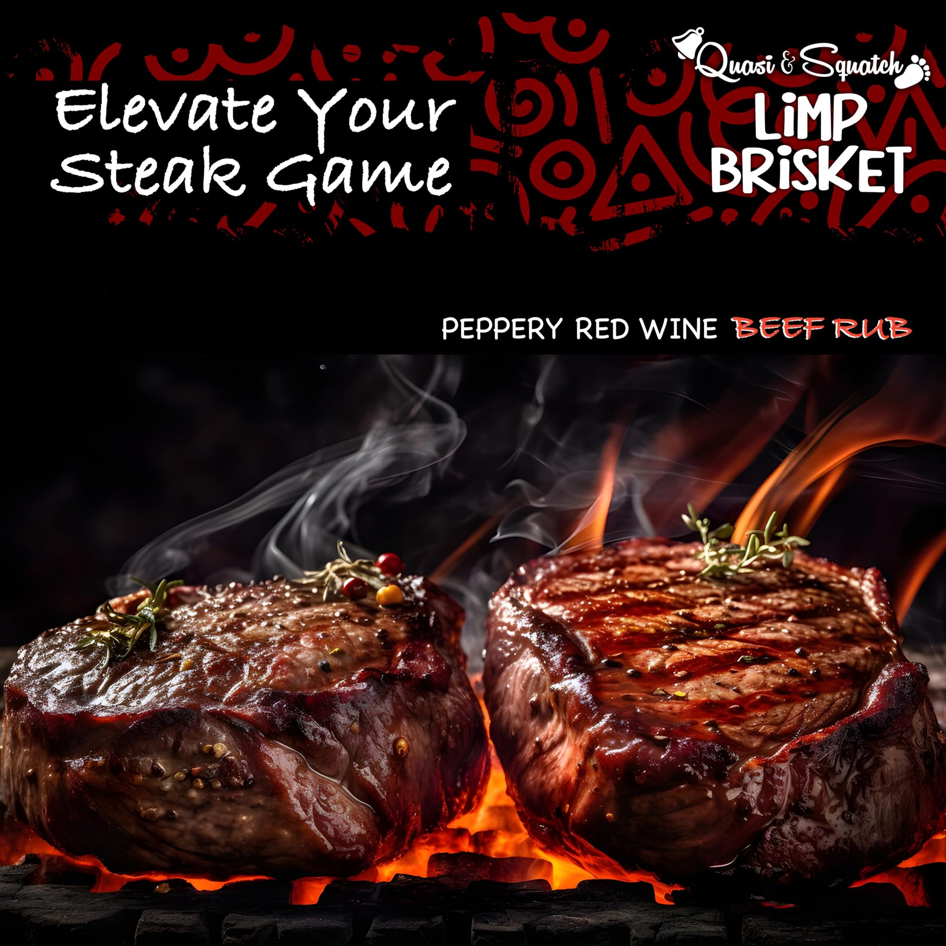 Beef Rub by Quasi & Squatch - Limp Brisket (Smokey Peppery Red Wine) Barbecue Dry Rub Meat Seasoning | Perfect Blend Of Spices For Smoking and BBQ | For Grill Pork Dishes | Large 220g