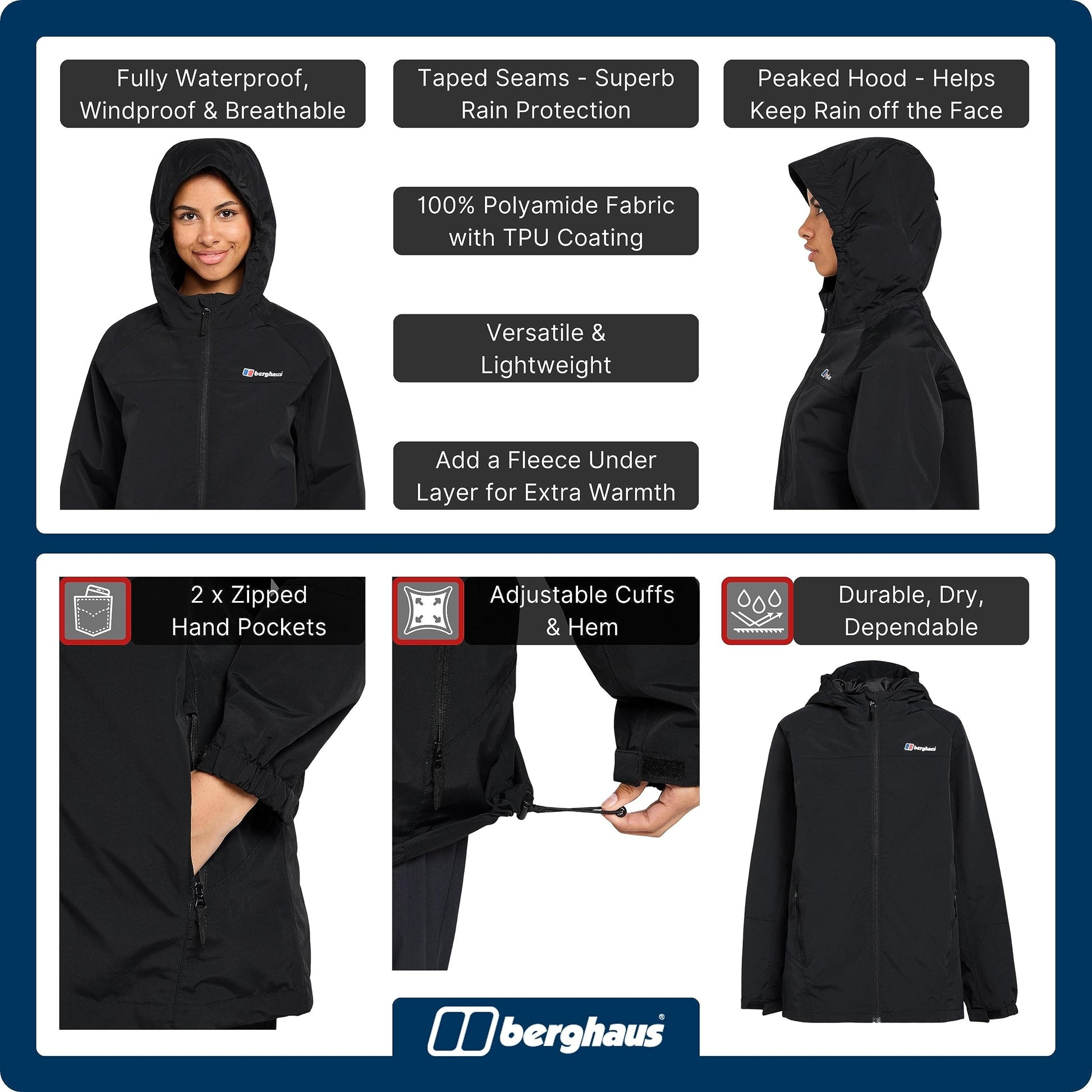 - WATERPROOF - The waterproof fabric on this Berghaus kids jacket keeps rain at bay with ease, with a clever airflow system to maximise breathability. Fully taped seams enhance the waterproof protection