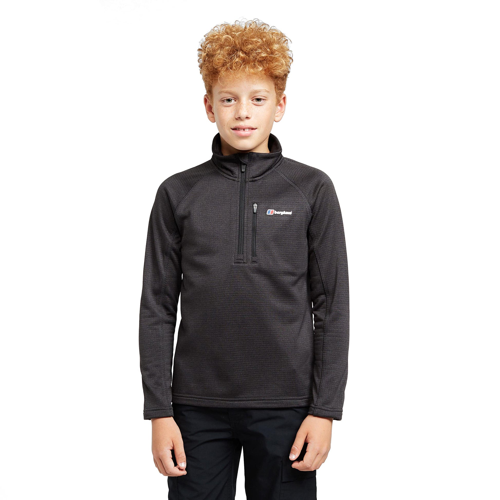 Berghaus Grid Kids' Fleece Top with Half-zip Fastening, Kids' Midlayer Fleece, Kids' Hiking & Outdoor Recreation (7-8 Years, Black)