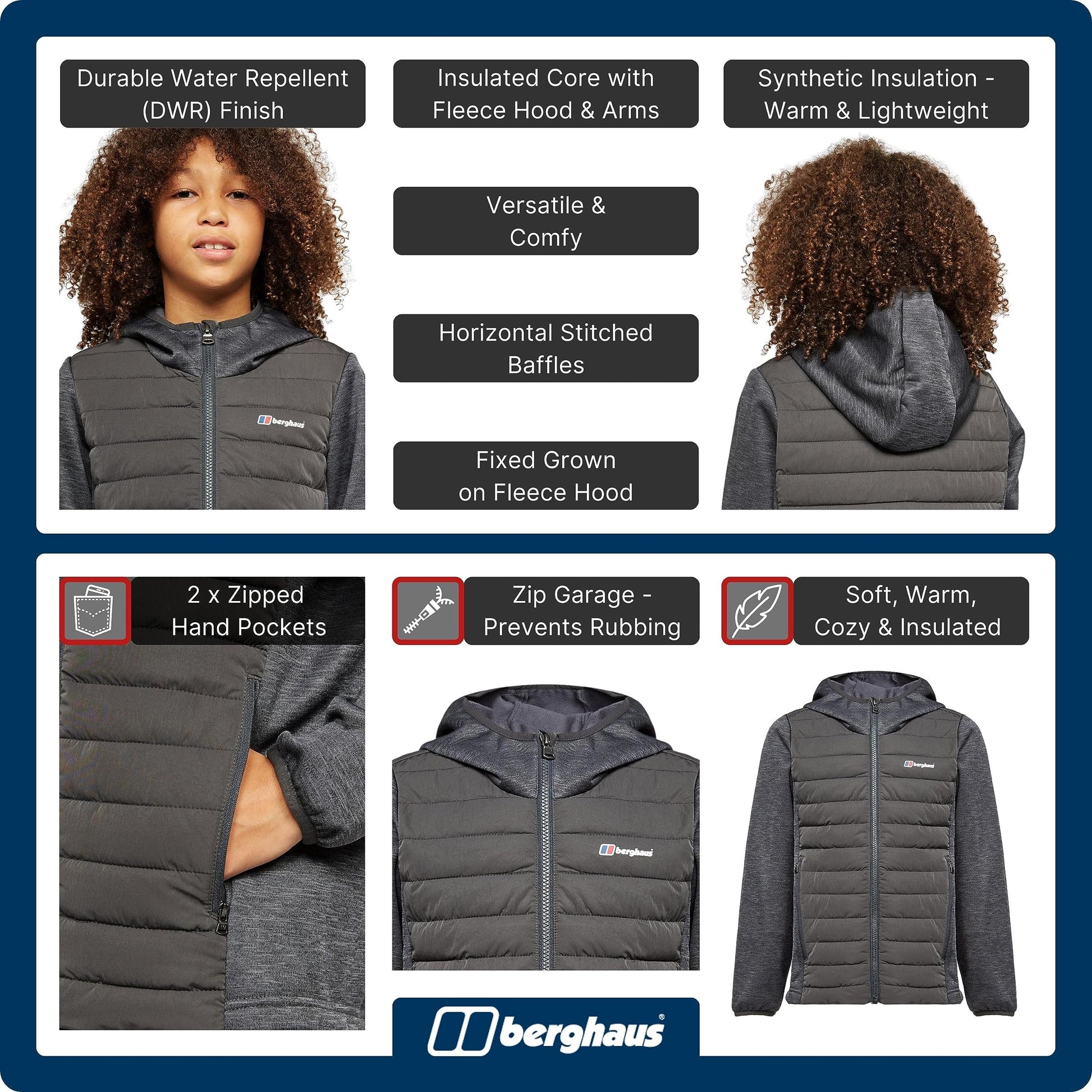 - WATER REPELLENT - This Berghaus jacket for kids has a Durable Water Repellent (DWR) finish to repel water, ensuring you stay comfortable and dry whatever the weather