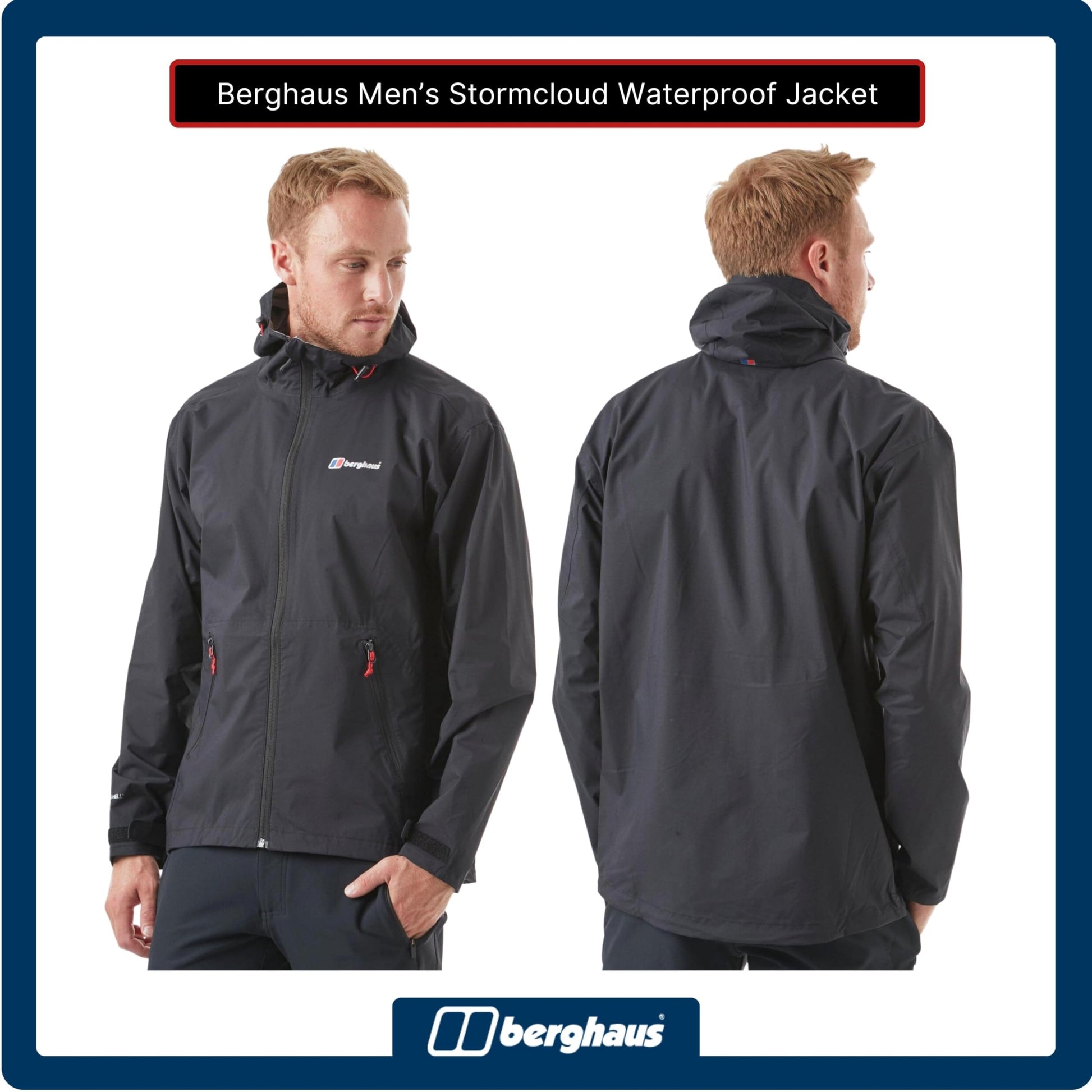 Berghaus Men's Stormcloud Waterproof Jacket with AQ2 Fabric and Fully Adjustable Hood, Packable Rain Jacket, Men's Hiking & Outdoor Recreation Clothing, Black, L