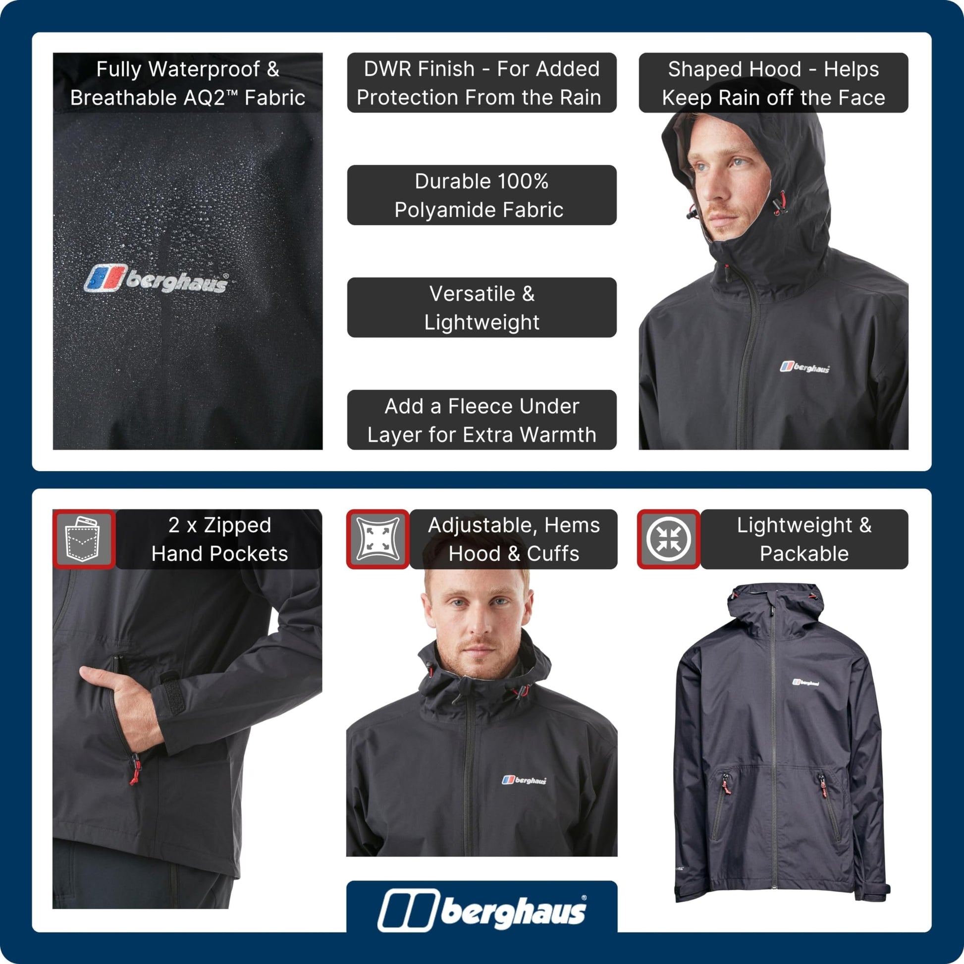 - WATERPROOF - This men's waterproof jacket is crafted using Berghaus' own waterproof technology AQ2 which has a hydrostatic head of 10,000mm. It offers good waterproofing, breathability and is lightweight