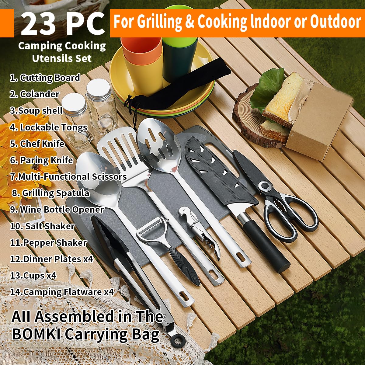 Berglander Camping Cooking Utensils Set 23 Piece, Camping Essentials Camping Accessories Gear Must Haves Camper and BBQ Utensils for Travel, Picnics, Camping, BBQ, Party and Other Outdoor Activities