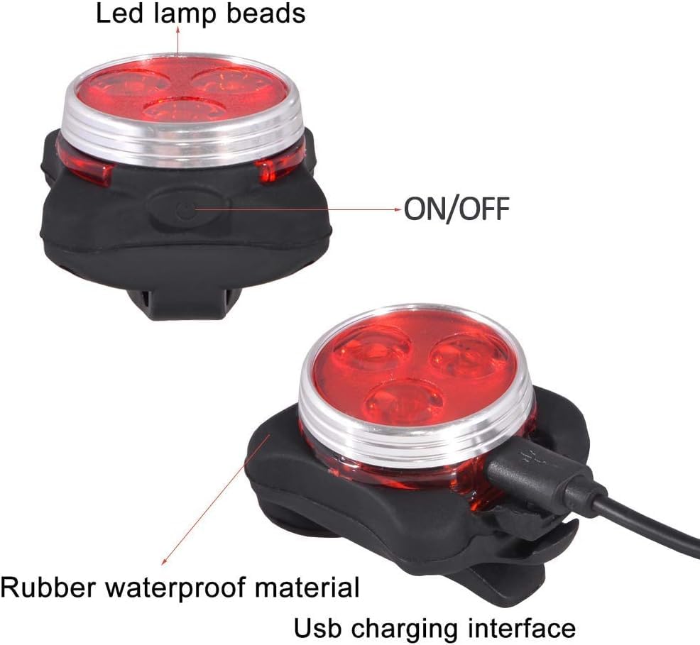 - 【Four Light Modes】: More switching modes allow you to better adapt to the surrounding environment,Both the white front bike light and red rear bike light support 4 light modes: full brightness/half brightness/fast strobe/slow strobe modes. By simply clicking the button, you can switch modes as you wish.