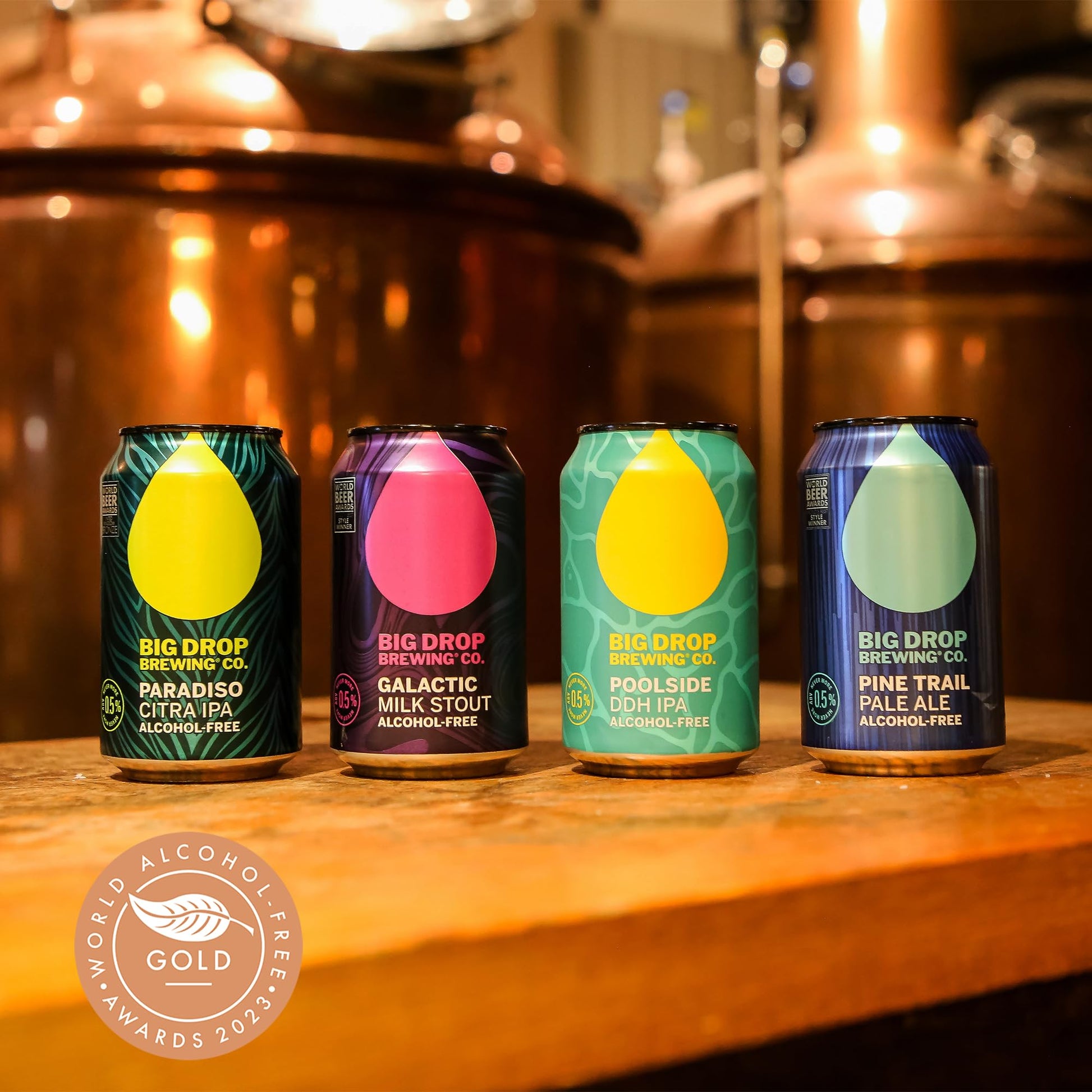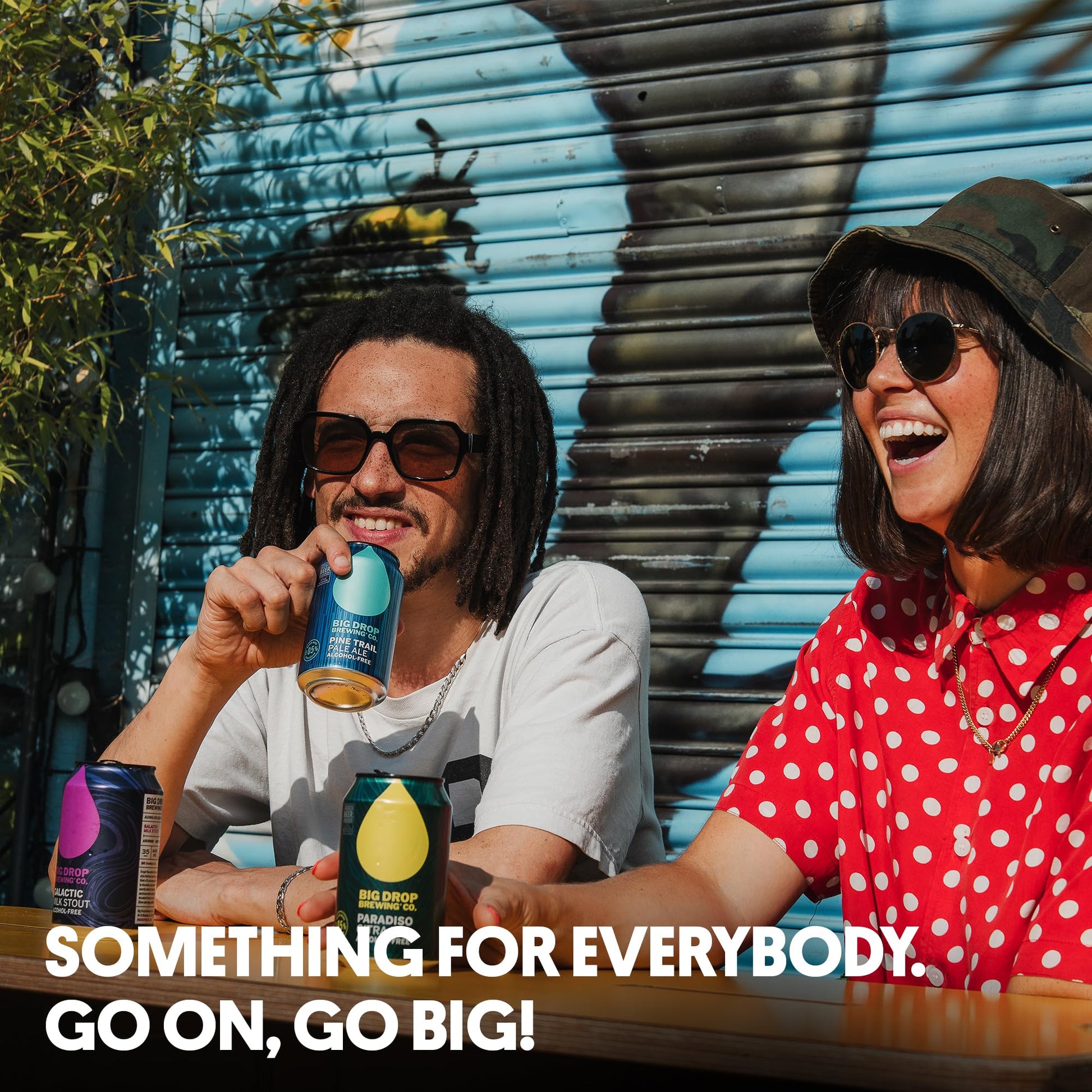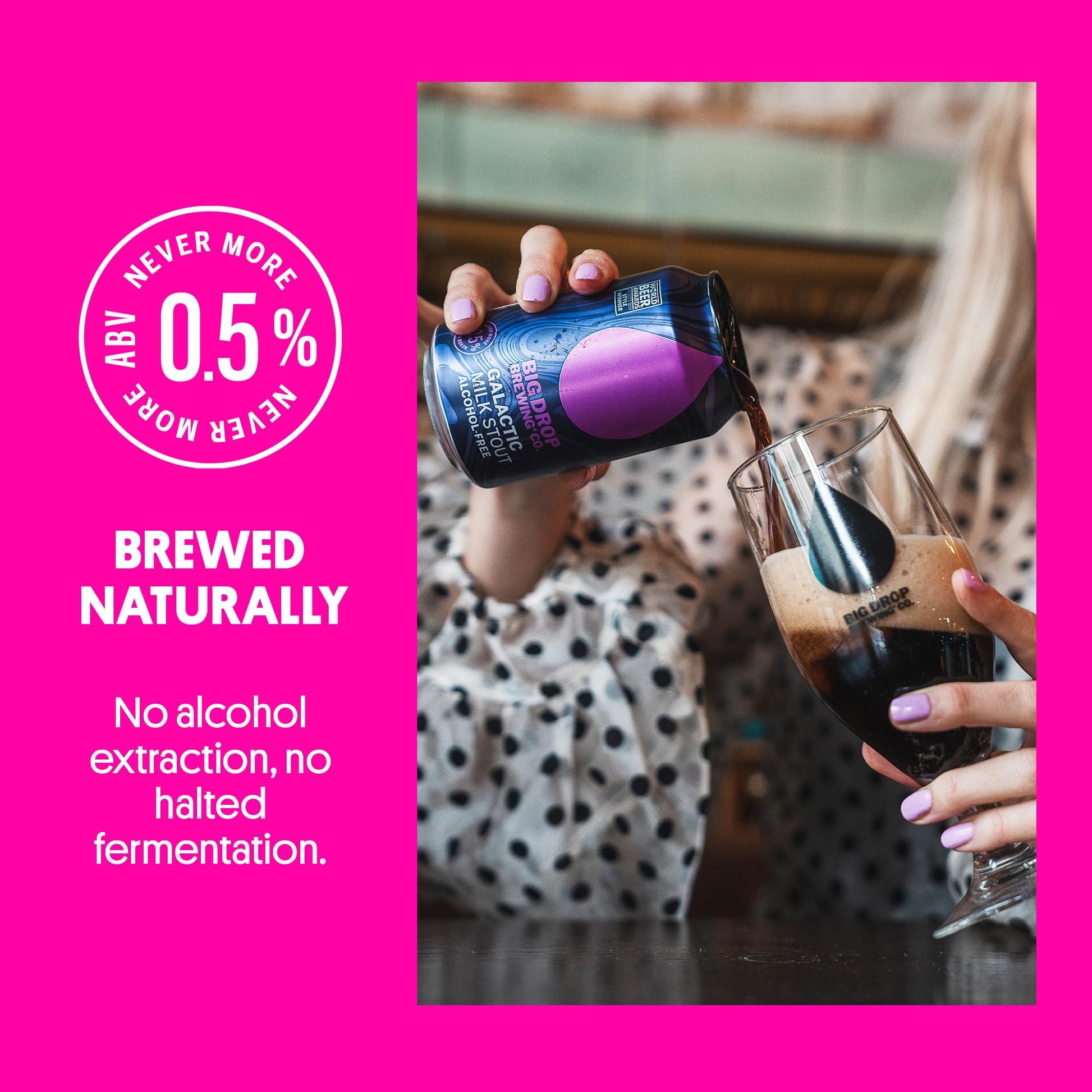 At Big Drop Brewing, we make award-winning craft beer that just happens to be alcohol free. Whether you’re cutting down, cutting out or just trying something new, our craft beer is so good, you won't miss the alcohol. Our delicious alcohol free Galactic Milk Stout is made for beer fans - it's great tasting, vegetarian and gluten-free - never more than 0.5% alcohol. Enjoy a pudding-like combination like glorious honeycomb and chocolate hints - the perfect after-dinner treat with rich and decadant in every sip. Prepare for an out-of-this-world, innovative taste sensation - with a blend of barley, wheat, oats, cocoa and Bramling Cross hops for great flavour. Our naturally brewed craft beers are all brewed locally because we know beer doesn't travel well and the freshest taste comes by using local partners. Founded in 2016, we've won more beer awards than we've had BBQs - including World Beer Awards 2021, US Open 2021 and Craft Beer Awards 2022. This stout makes a great gift, or crack open at home to get the party started.