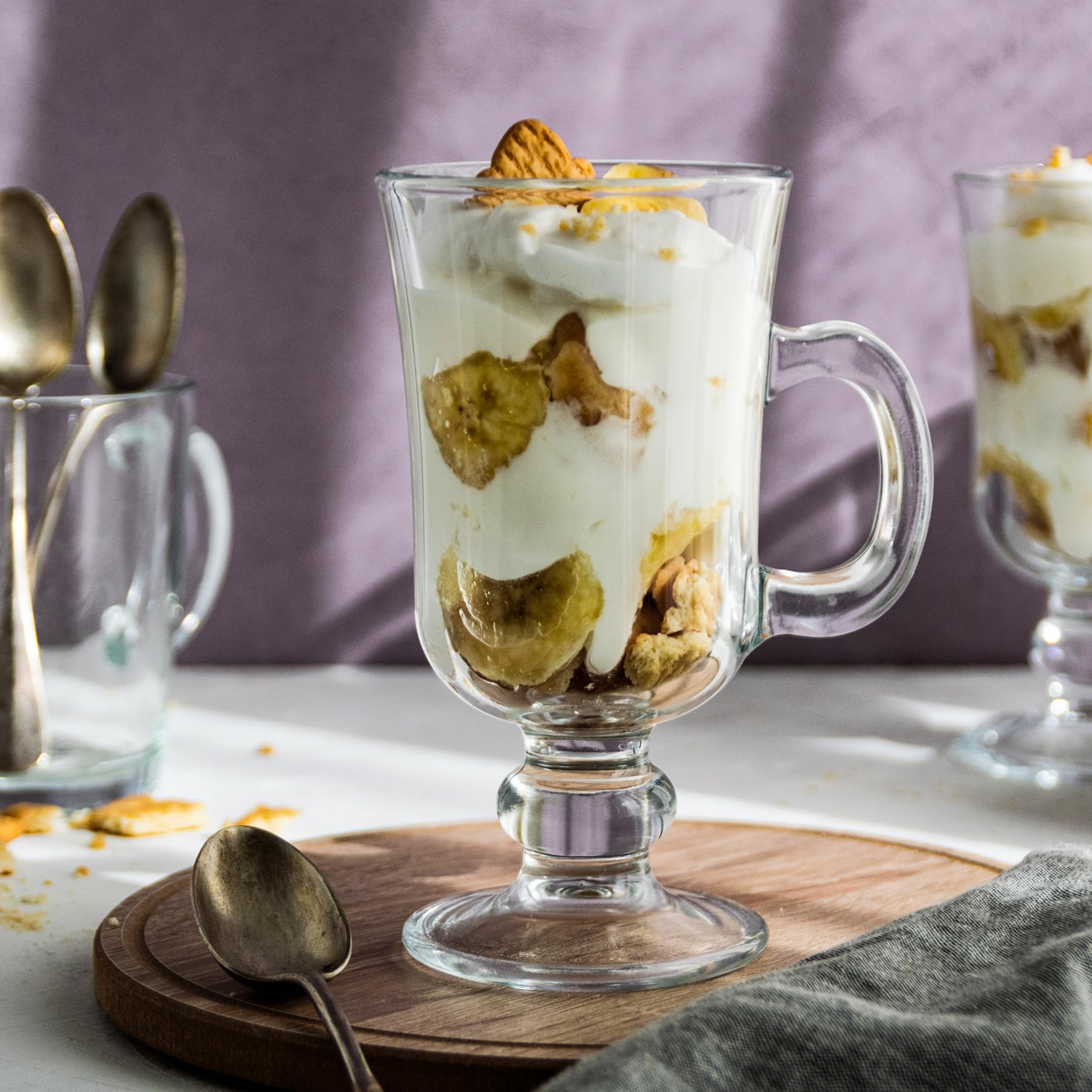 - Durable Handle : The decorating glass cups for coffee are equipped with durable handles, so the footed drinking glasses can be easily picked up even if the cup is filled with hot drinks. The wide bottom of the glass mugs for hot beverages makes the Irish coffee glasses more stable and helps to insulate.