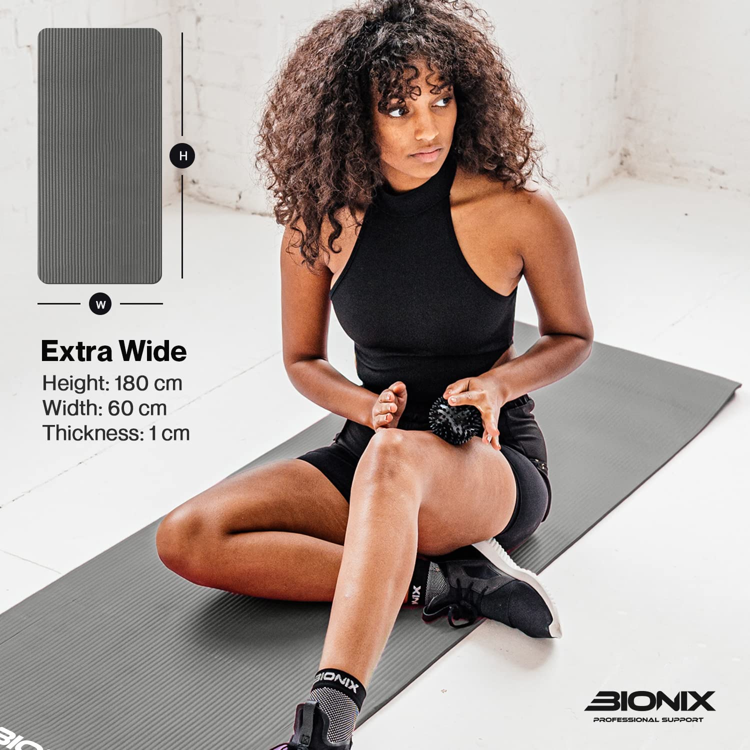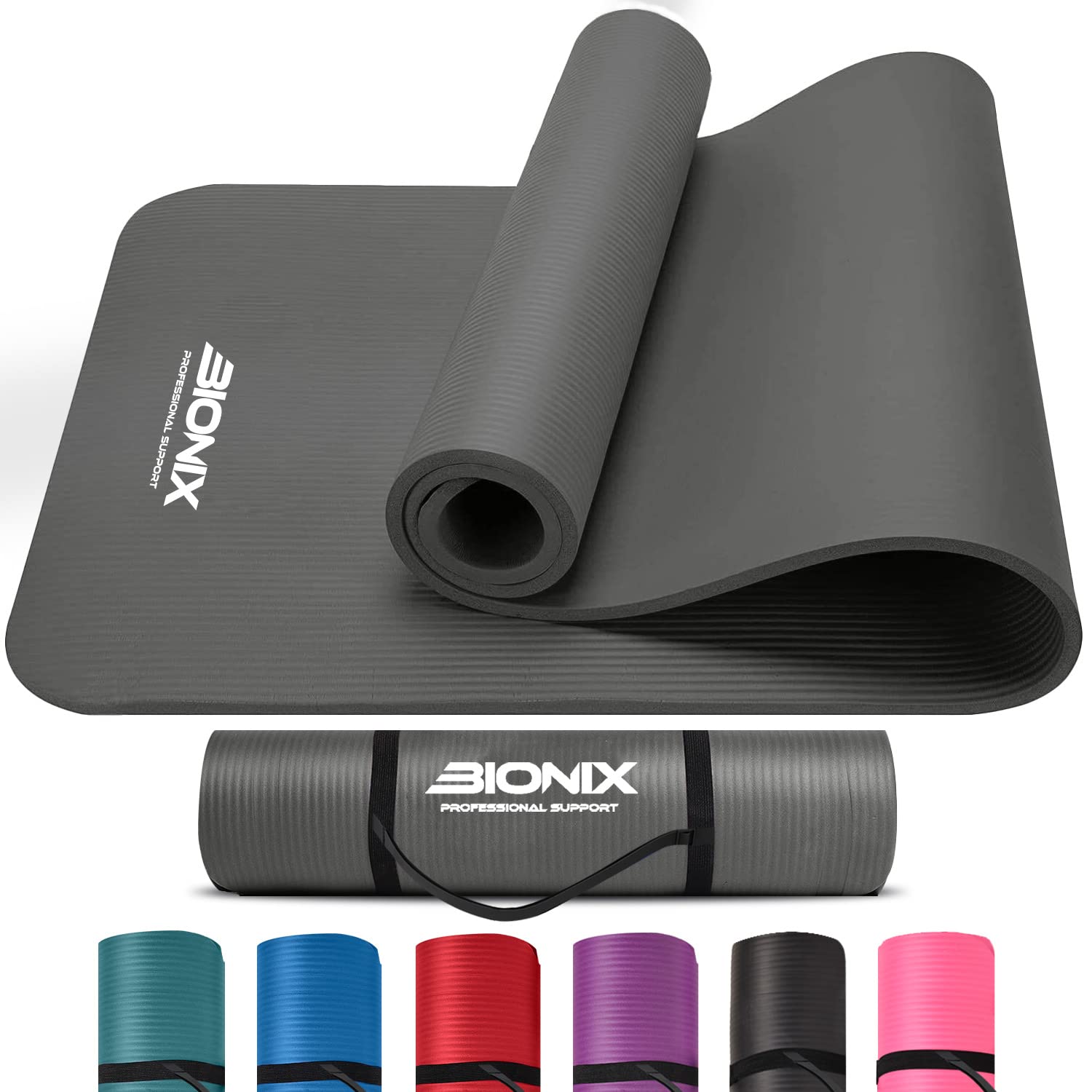Bionix Exercise Mat with Carry Handle Strap- Extra Thick NBR Yoga Mats for Men and Women- 180cm x 60cm Durable, Non Slip Mat - Gym Mats for Home, Camping, Pilates and Workout