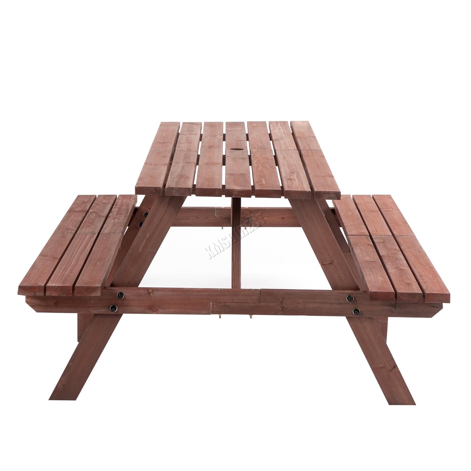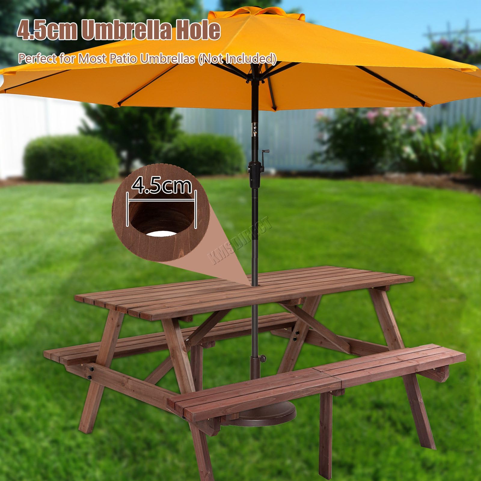 BIRCHTREE Outdoor Wooden Picnic BBQ Rectangular Table Bench Garden Patio Deck Pub Chair 4 Seats Garden Patio Home Park Furniture Fir Wood Brown New