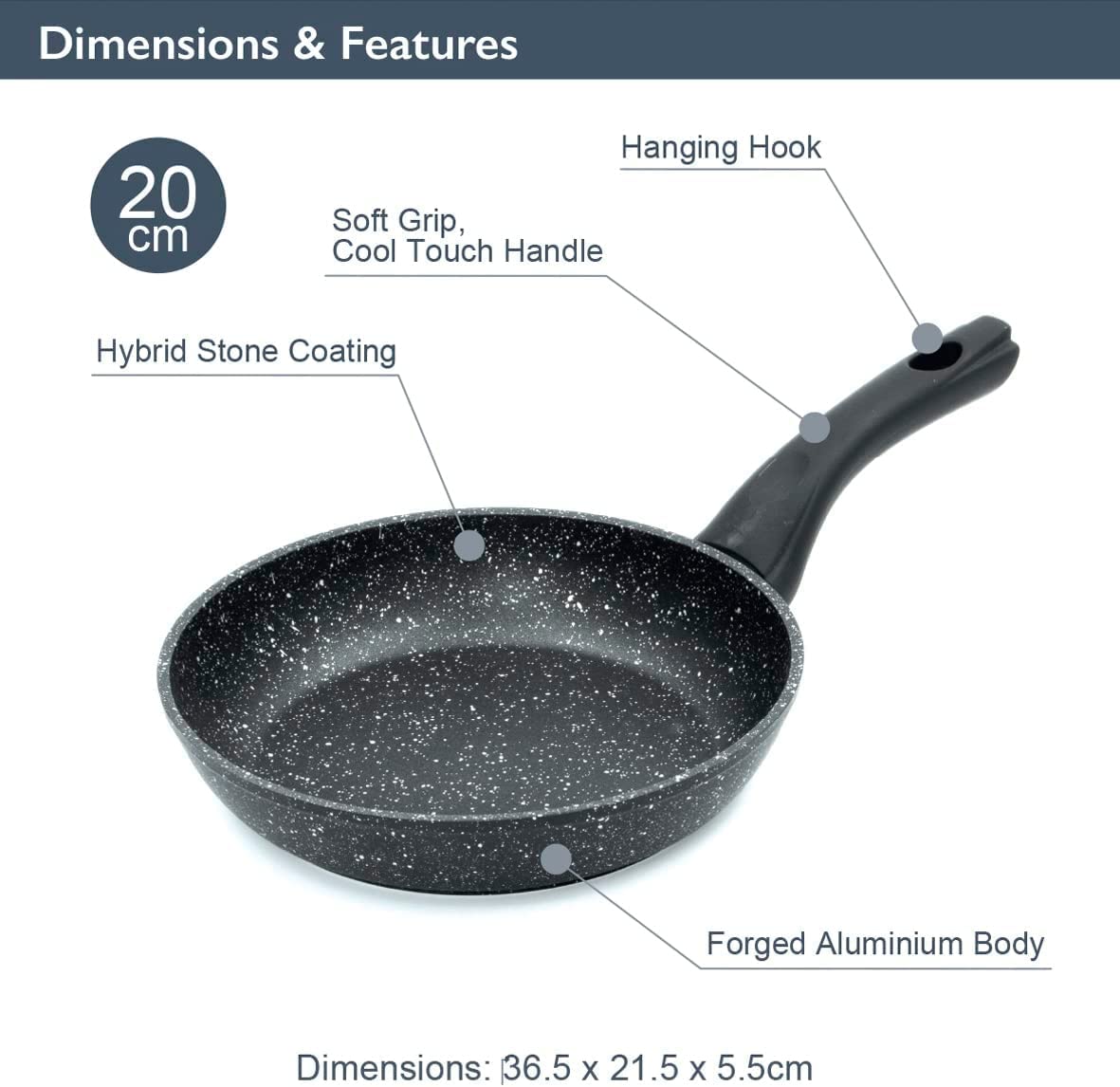 - NON-STICK COATING – The non stick frying pan features an innovative coating that will ensure an efficient release of foods from the pan at all times. The pan also features a forged aluminium base, and a hybrid stone coating that allows heat to conduct faster, and retains said heat for longer when in use.