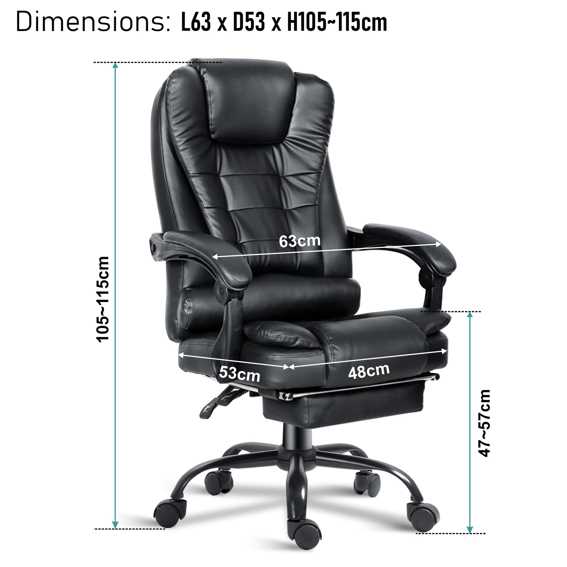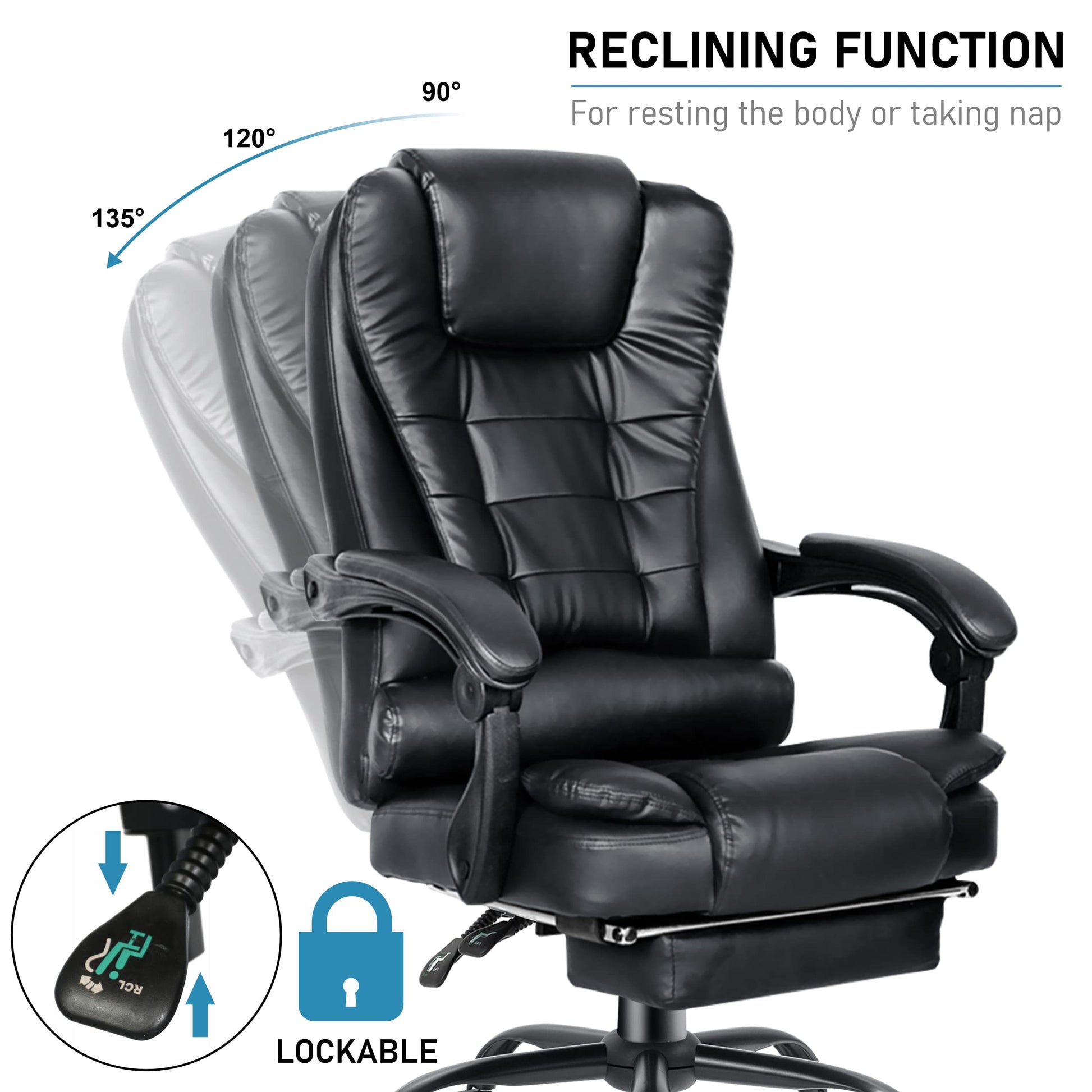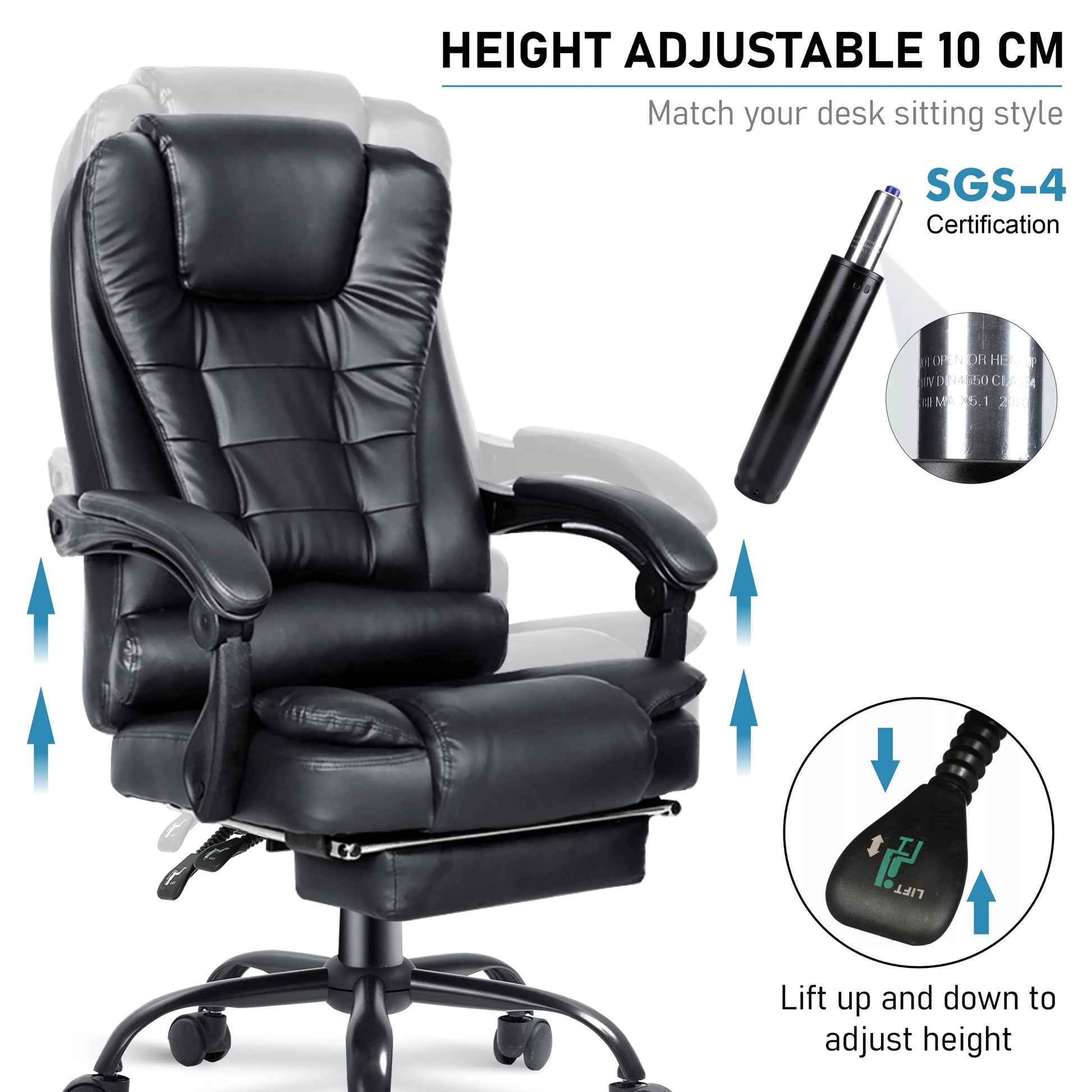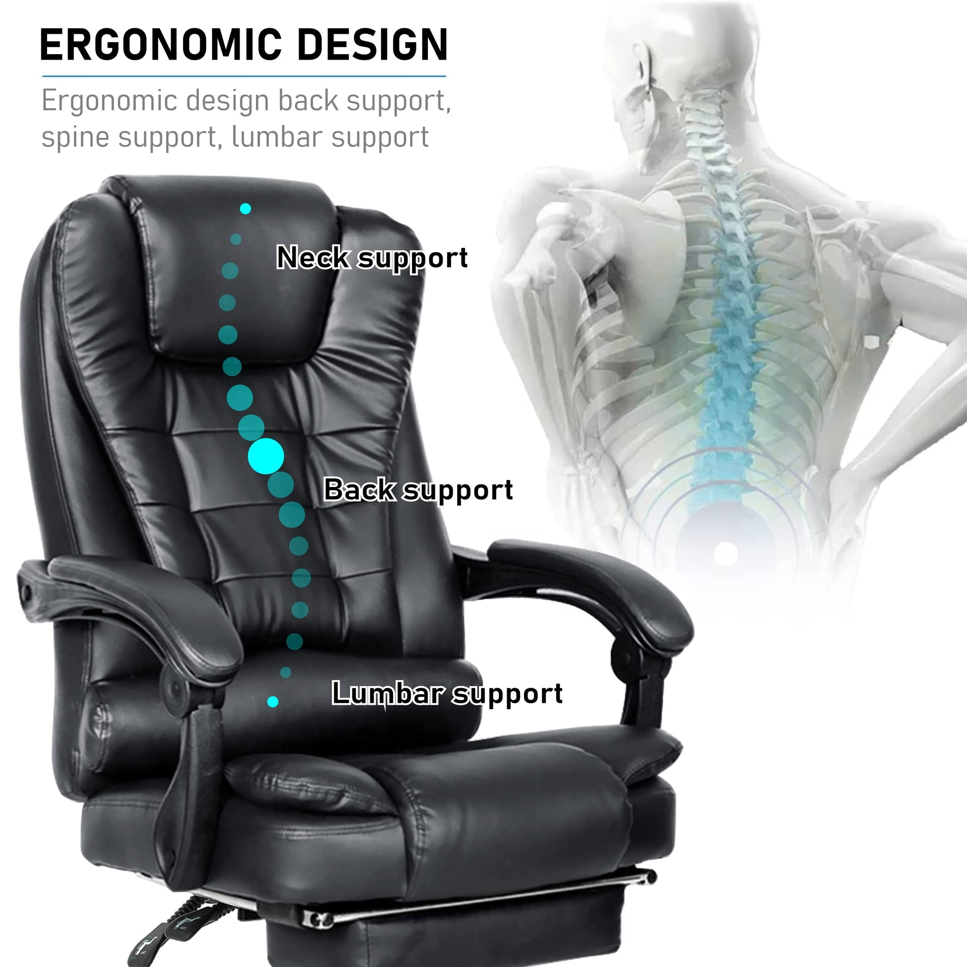 Blisswood Executive Office Chair For Home, 2 Point Massage Office Chair With Footrest & Lumbar Support, Recliner Computer Desk Chair, Ergonomic Swivel Gaming Chair Black For Home Office