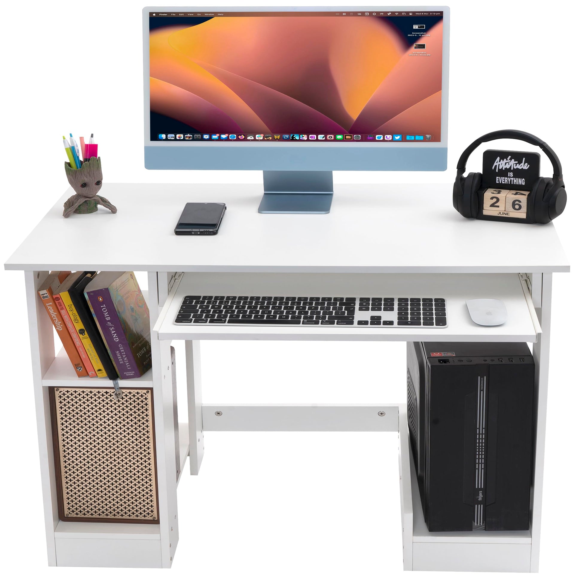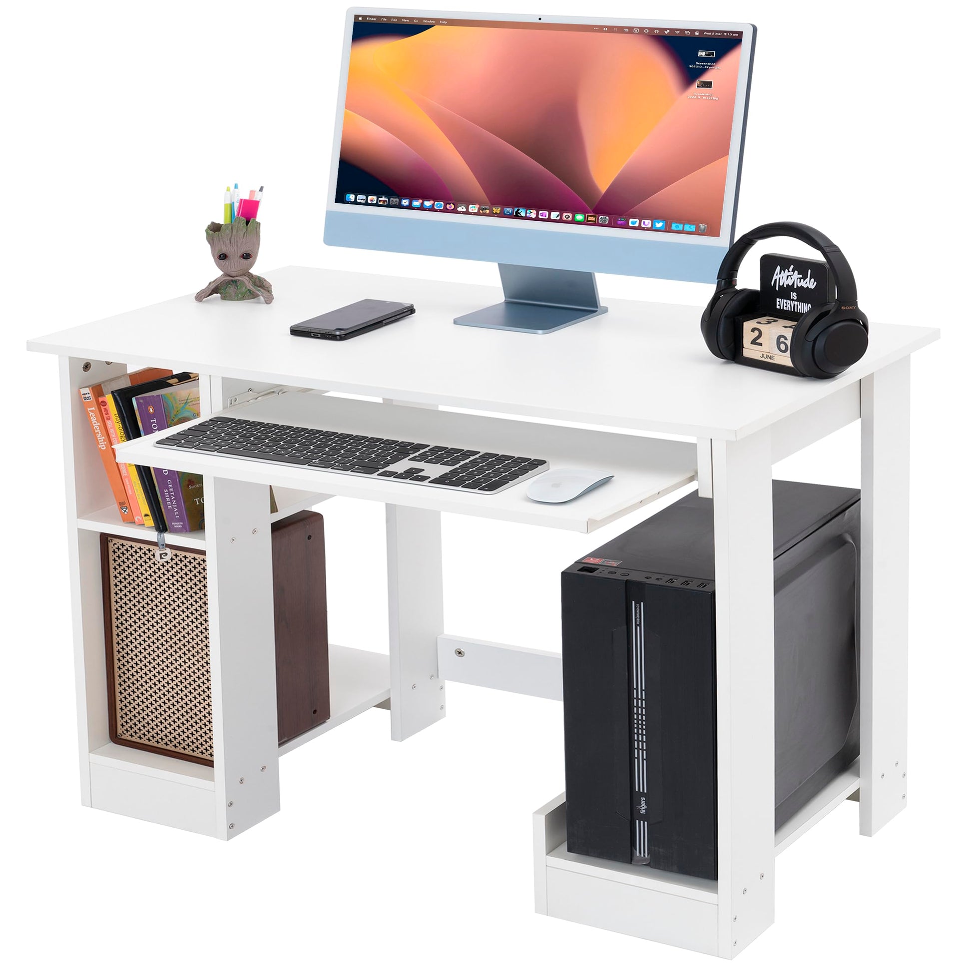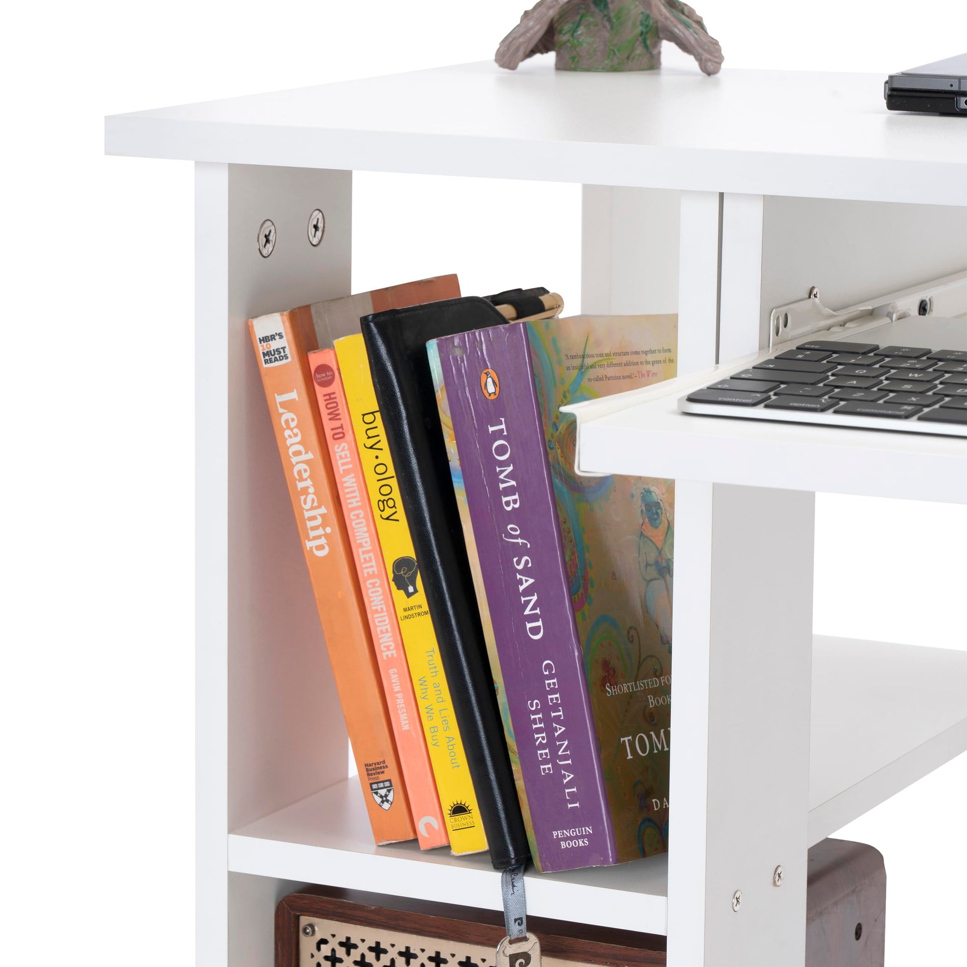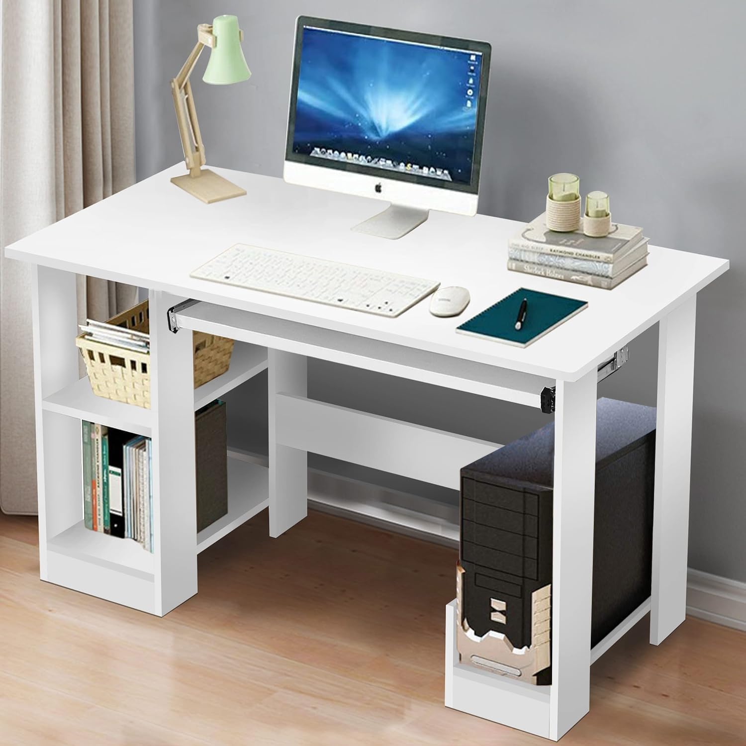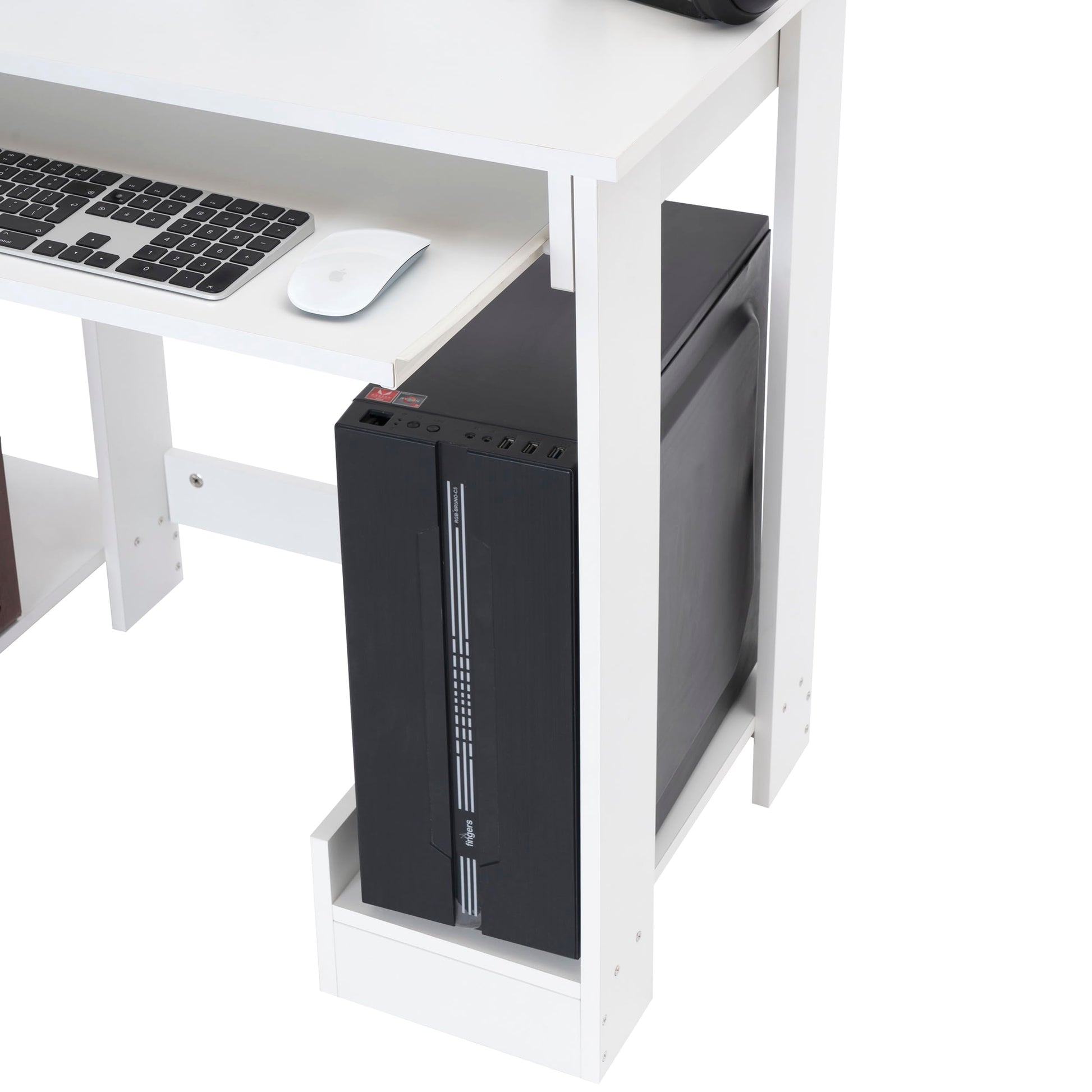 This Computer Desk Is Made High Quality 17mm Engineered wood, Scratch-resistant And Easy Cleaning. it has Enough Space Storage Shelves Design, Easy To Storage And Display Your Documents, Books And Files. Computer Gaming Desk Has a Slide-out Keyboard Drawer And Is Available In White Finish. The Compact Design Fits In Your Room, Office, Study, Or Other Space-limited Places. Multifunction, Can Be Used As A Workstation, Laptop Computer Table, Study Writing Desk Etc. Easy To Install With The Instruction, Supply All The Installation Accessories, Perfect For Home And Office Use. SPECIFICATION