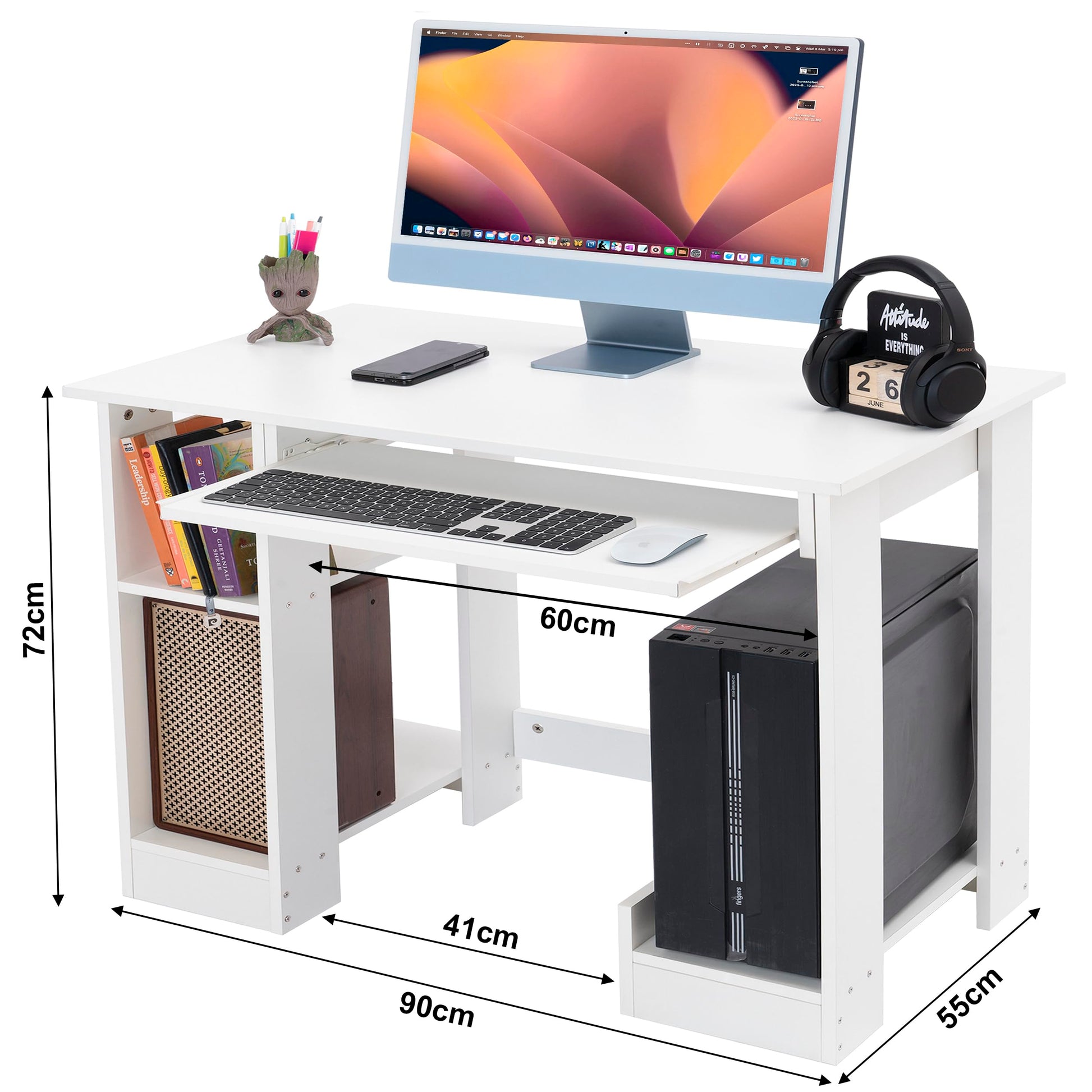 Blisswood Home Office Desk, White Computer Desk With Shelves & Sliding Keyboard Tray PC Laptop Table For Writing Workstation Bedroom Study Furniture (90 x 55 x 72CM)