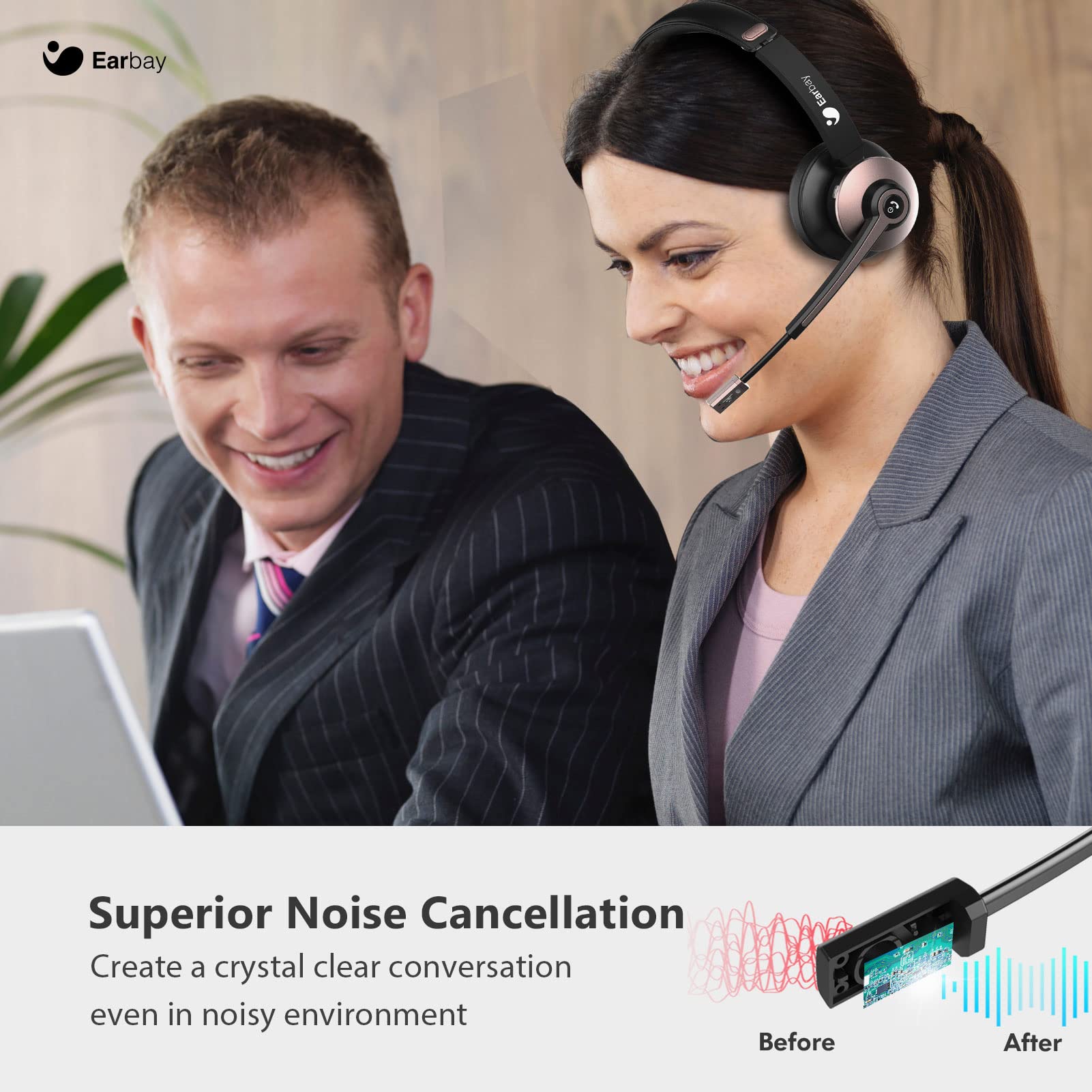 - 【Stable Latest Bluetooth V5.0 Tech & Dual Connect】: Earbay BT782 wireless headset is equipped with powerful bluetooth & sound processing chips which are made in latest tech. Connect the headset with mic in a few secs with 2 devices easily. Connectivity range up to 50feet/15m. In open area, up to 130 feet/40m.