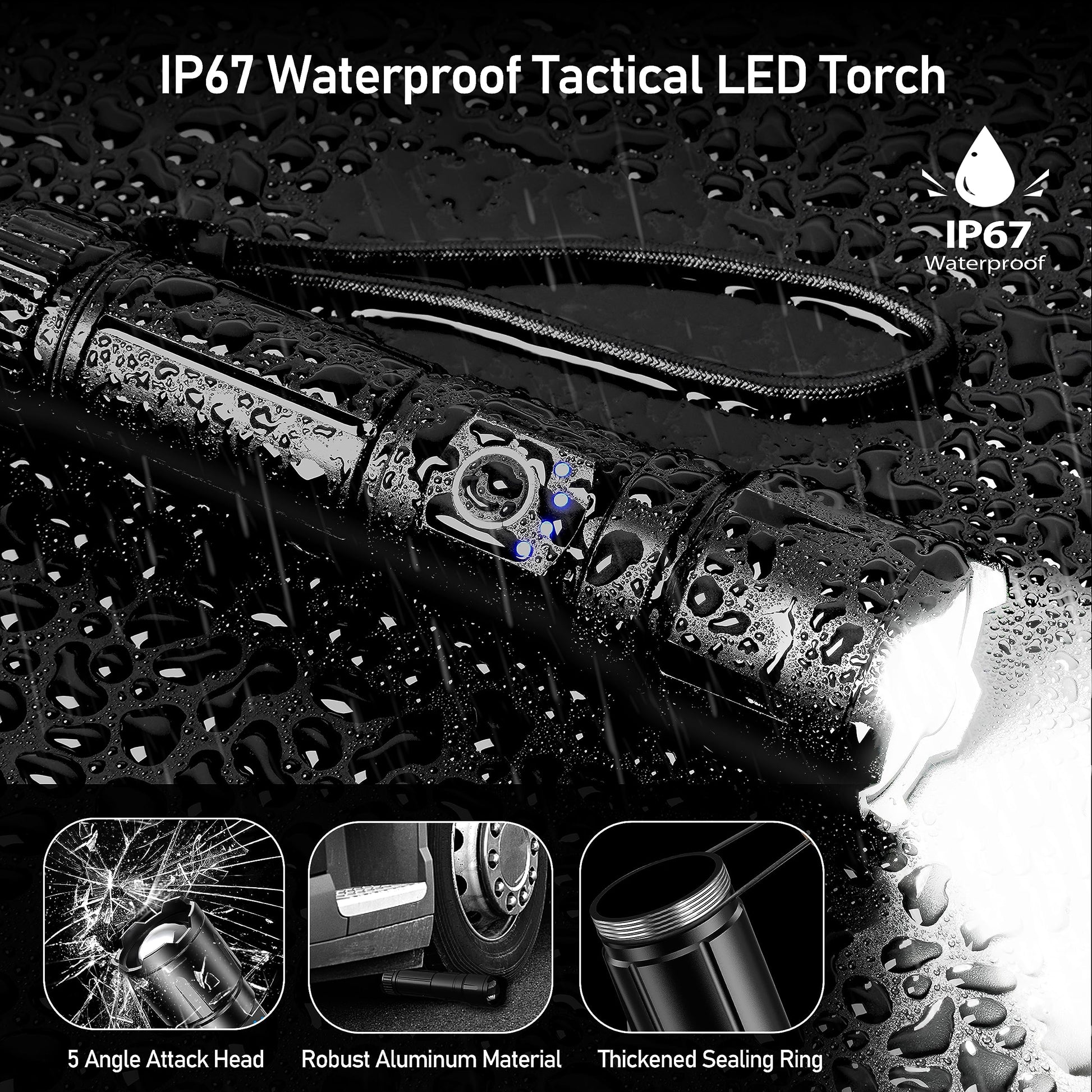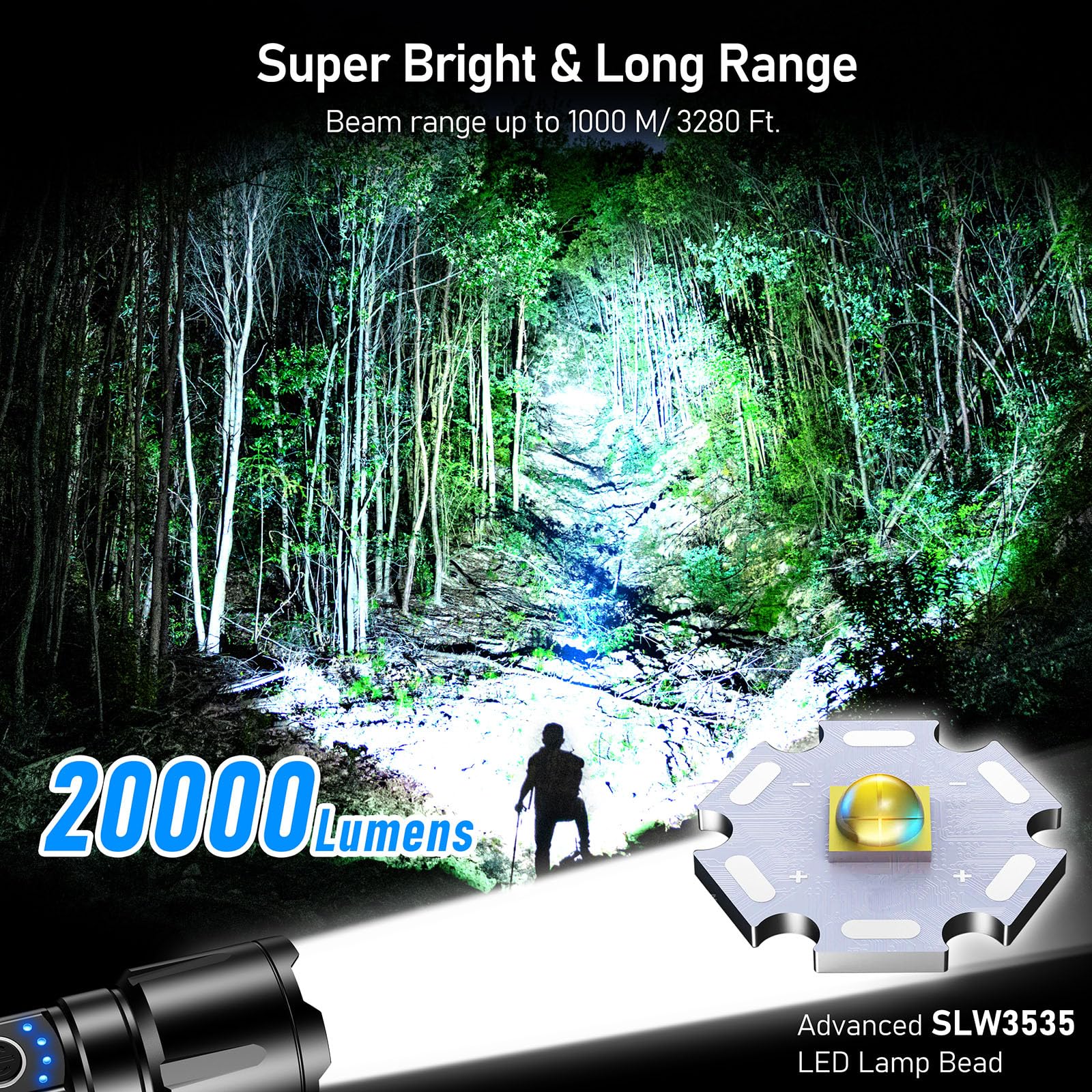 Blukar LED Torch, 20000 Lumens Super Bright Torches Led - Adjustable Focus, 5000 mAh, IP67 Waterproof, Powerful Long Lasting Handheld Flashlight for Power Cuts, Camping, Hiking, Emergency etc.