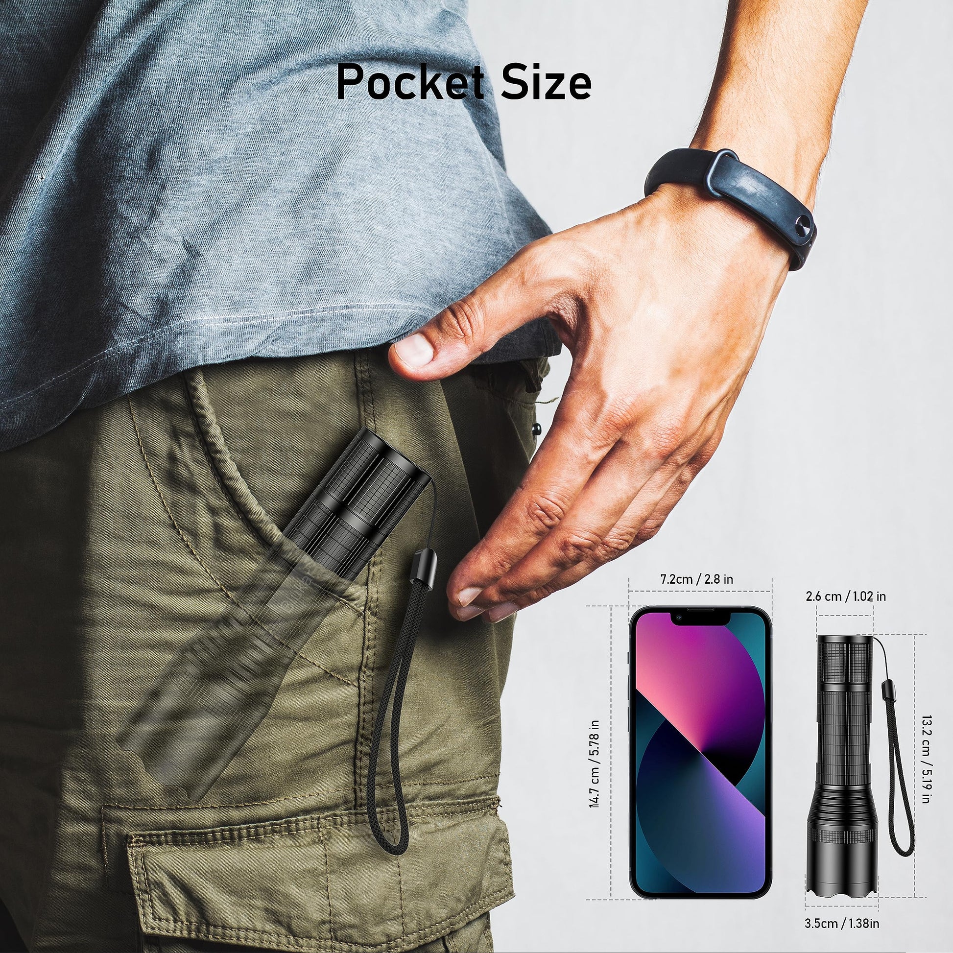 - š¦ćCompact and VersatilećThe flashlight is compact and easy to carry in your pocket, backpack or survival kit. It is perfect for indoor and outdoor use such as camping, hiking, fishing, dog walking, power outages, household use or as emergency lighting.