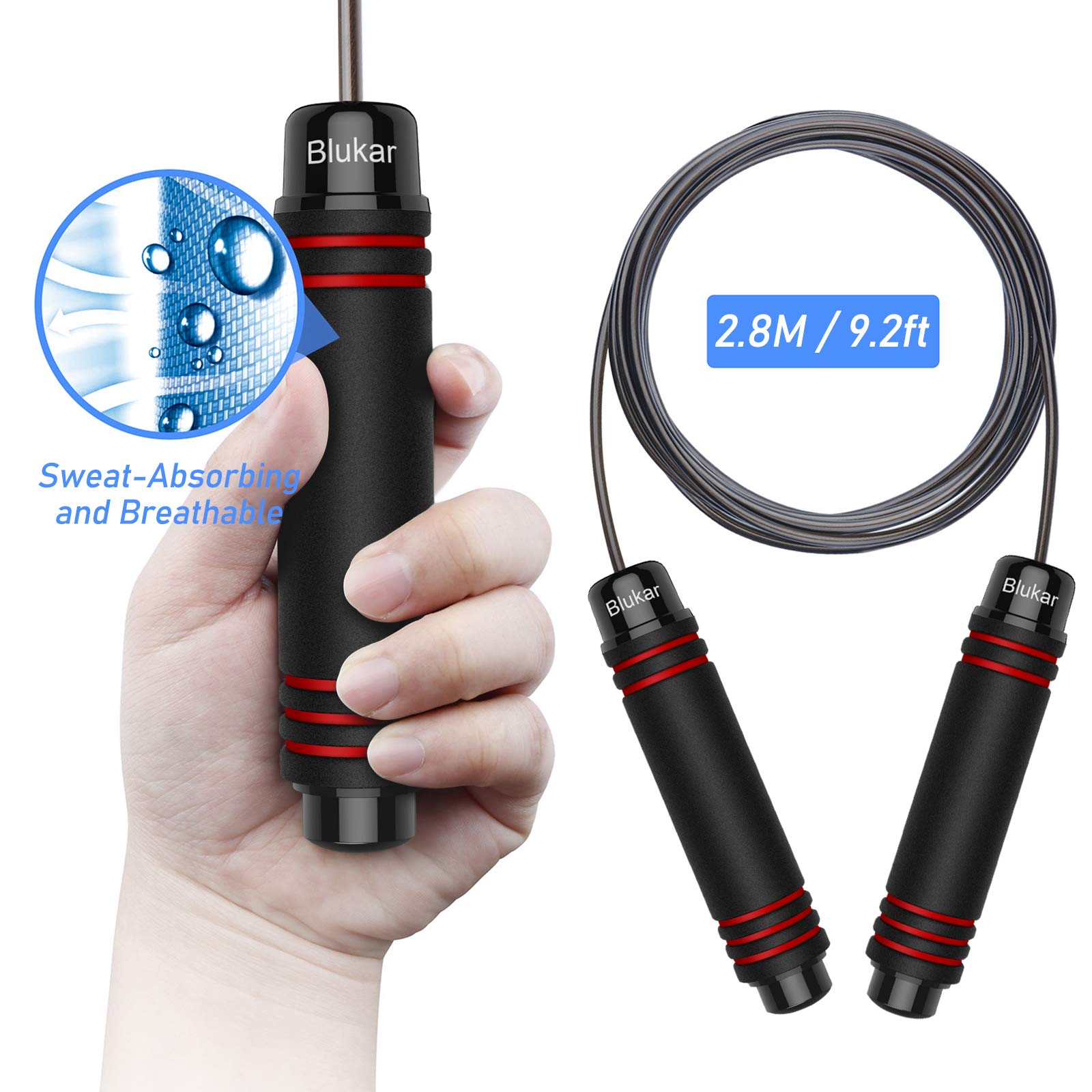 Blukar Skipping Rope, Speed Jump Rope Tangle-free Adjustable Rope with Rapid Ball Bearings & Soft Foam Handle for Fitness Workouts Fat Burning Exercises Boxing - Spare Rope Length Adjuster Included